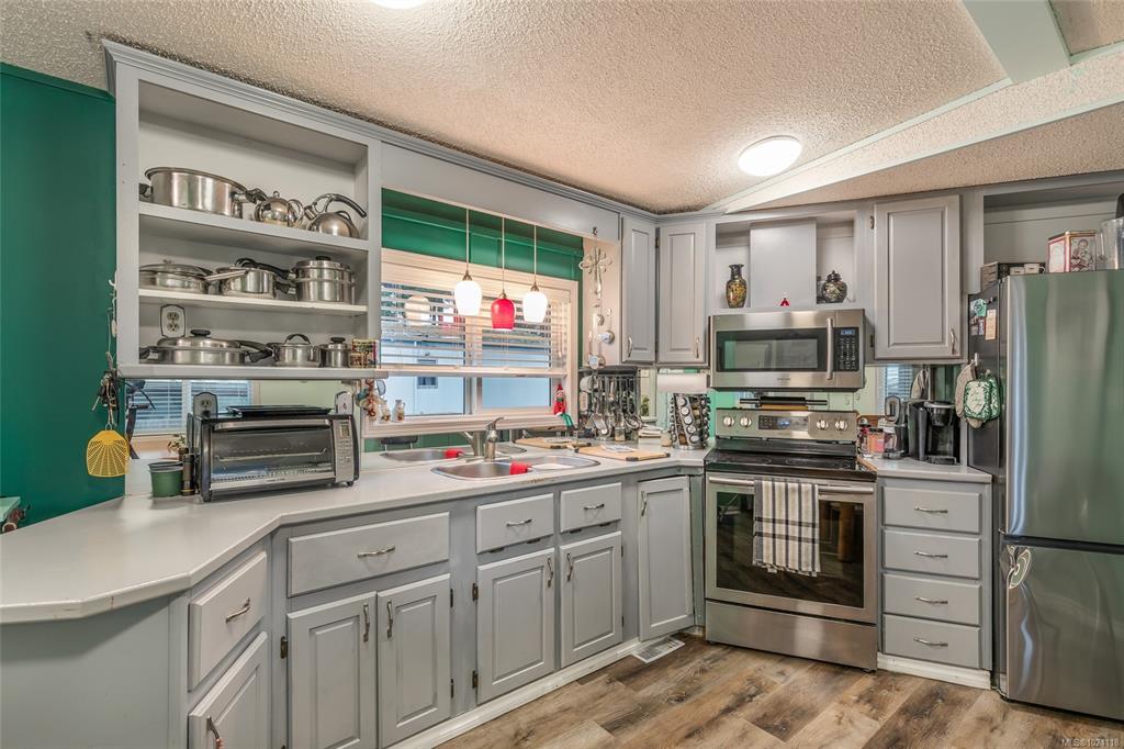 This spacious, modern modular home in the friendly 55+ Timberlands mobile home park offers a calm, low maintenance place to land. Think of it as your base for easy island days. A bright, open living area with large windows and built-in storage connects to an updated kitchen with stainless appliances and a dining area with more storage. The walk through laundry leads to a covered, enclosed deck for morning coffee or quiet afternoons. The plan keeps privacy in mind, with the primary suite and ensuite at one e...