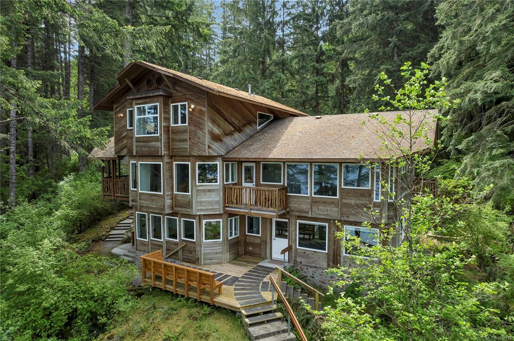 A rare offering…Custom built home on 4.94 acre oceanfront property overlooking Hyacinthe Bay! The main level entry home offers unique rock work, wood finishes & built-ins throughout. The dining room & living room on the main floor both have covered decks & the kitchen has lots of cupboards & counter space. There is a 2pc bathroom, laundry room, den & office with covered deck, also on this level. Upstairs you’ll find the primary bedroom with window seat, 2 closets & 3pc ensuite. The upper floor landing door ...