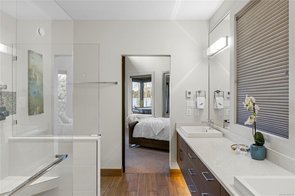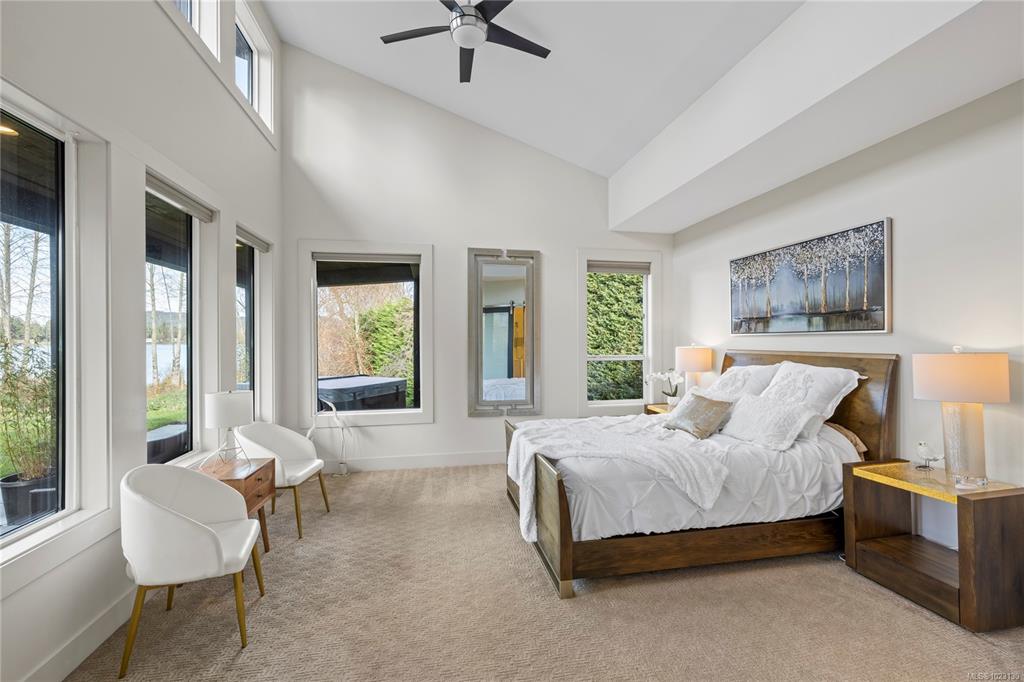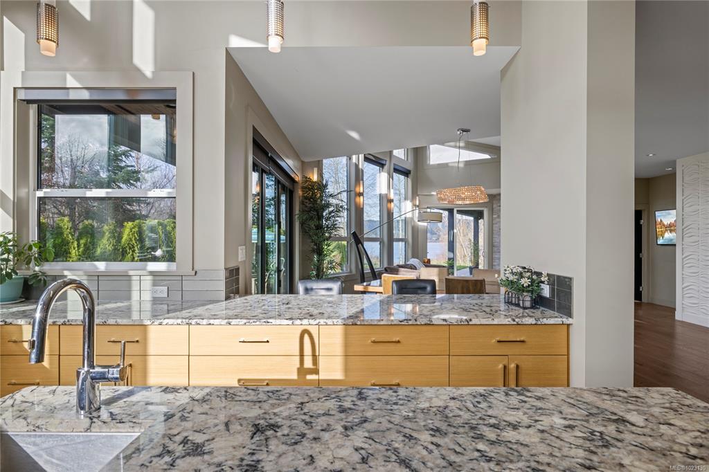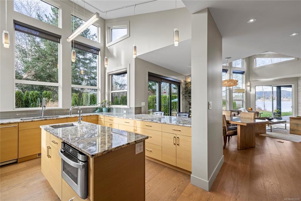Executive custom rancher on a private lakefront sanctuary impresses with 5 vaulted ceilings, and seamless indoor–outdoor flow with expansive retractable glass walls. Located in the sought after Trumpeter Point, perfect blend of luxury, nature, and West Coast serenity This unique property invites you to slow down and enjoy your surroundings. Chef’s dream kitchen, perfect for entertaining and, a spa-inspired primary ensuite provides a tranquil retreat, complete with auto blinds in the primary suite. New upgra...