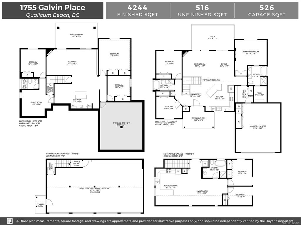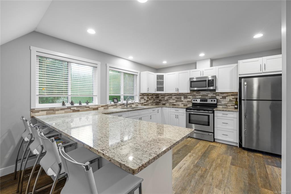 This picturesque property offers an exceptional blend of luxury, space, and country elegance. Set on 2.5 acres; the impressive 6-bedroom main residence is nicely laid out with an open concept living/dining area complete with the primary and two additional large bedrooms. Take in the view of your expansive yard from the large deck perfect for entertaining. Downstairs you will find an additional 3 bedrooms, large rec room and modern bar/kitchenette. This property is complemented by a four-bay detached shop...