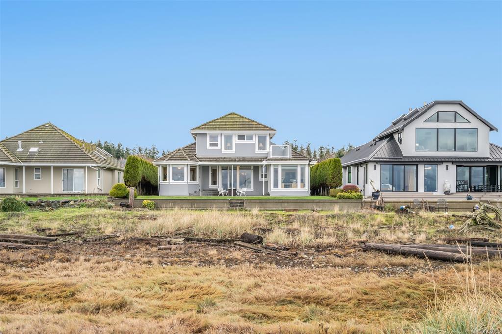 Walk-on waterfront home in Admiral Point, overlooking French Creek Harbour. Start your day with spectacular sunrises from the kitchen, family room and inspiring office. Enjoy your morning coffee from the stamped concrete patio and enjoy marine life with sealions, seals, eagles, herons, and occasional whales! Watch fishing boats, Coast Guard vessels, and cruise ships pass by. This lightly lived in home features a custom curved staircase that leads to the upper bedrooms, including an oceanfront primary with b...