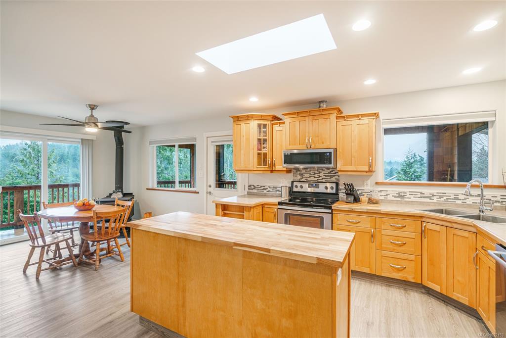 Inspiring LQRV Acreage! Beautiful 1.10-acre parcel of land hosting a bright and spacious 2190 sqft home boasting main-level living with a 2 Bed/2 Bath layout, a WO lower level with a partially finished 1 Bed/2 Bath Guest Suite, large windows and skylights, stunning views of Mt Arrowsmith and the Upper Qualicum River woodlands, heat pumps, sunny outdoor living spaces, an OS Garage/Workshop with a 2 pc Bath, and parking for an RV and boat. The home and acreage offer abundant space and potential for your lands...