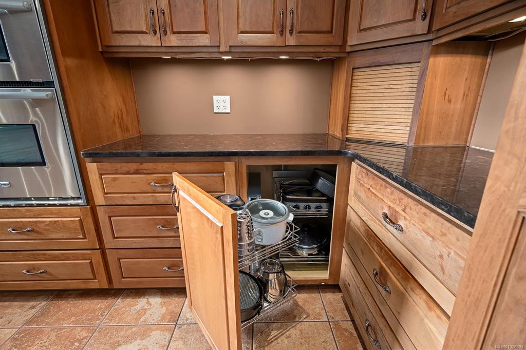 Little Qualicum River Village. Custom built one owner home. Rancher with fully finished basement. Walk past the pergola & lattice to front door-access with long driveway at the back of property to a double garage. Fully fenced, RV hookup and parking. Open floorplan features vaulted ceilings, European kitchen with embellished maple cabinets with island, granite countertops, pantry with Lee Valley pull outs, corner pull outs, steam oven, barista appliance, propane cooktop, recycling bins, built in oven an...