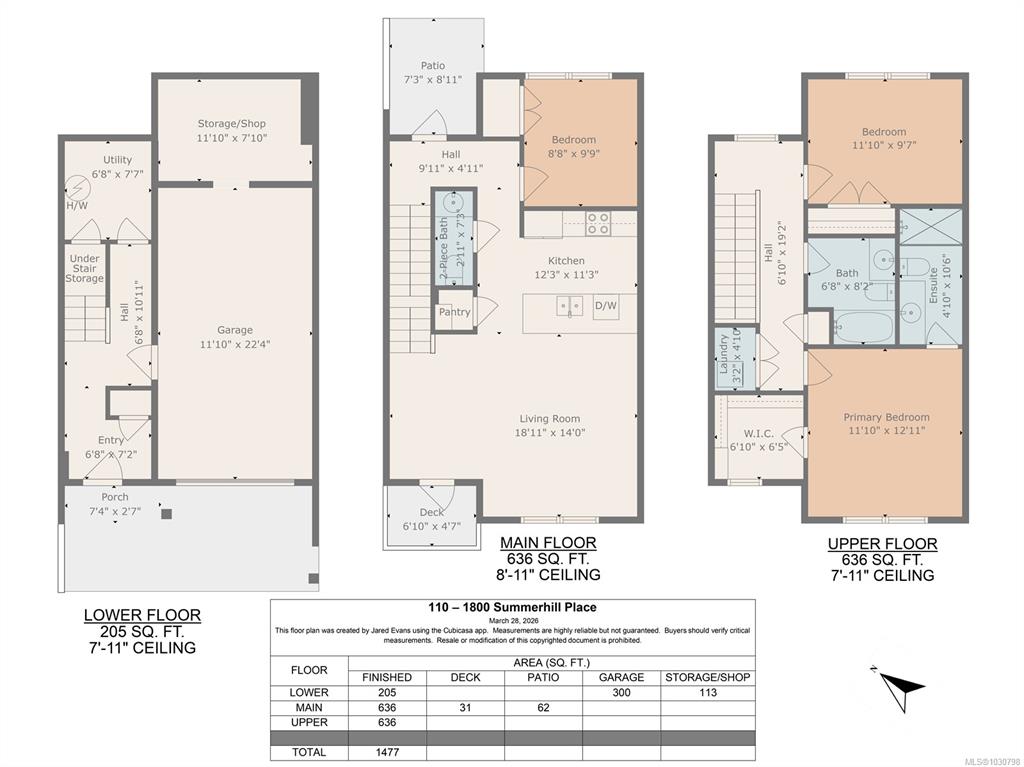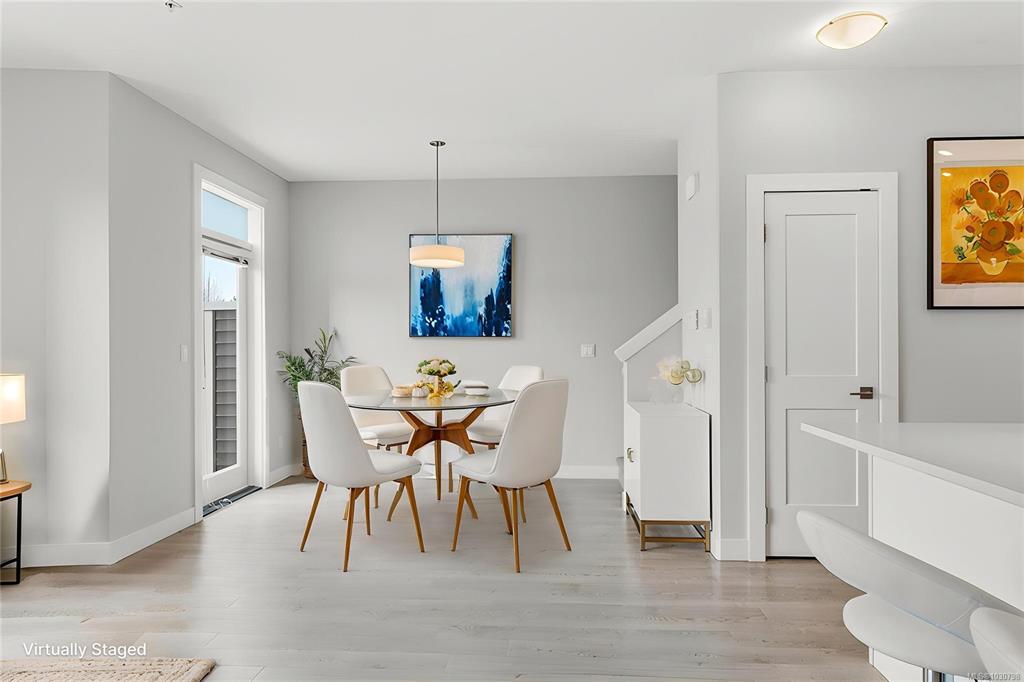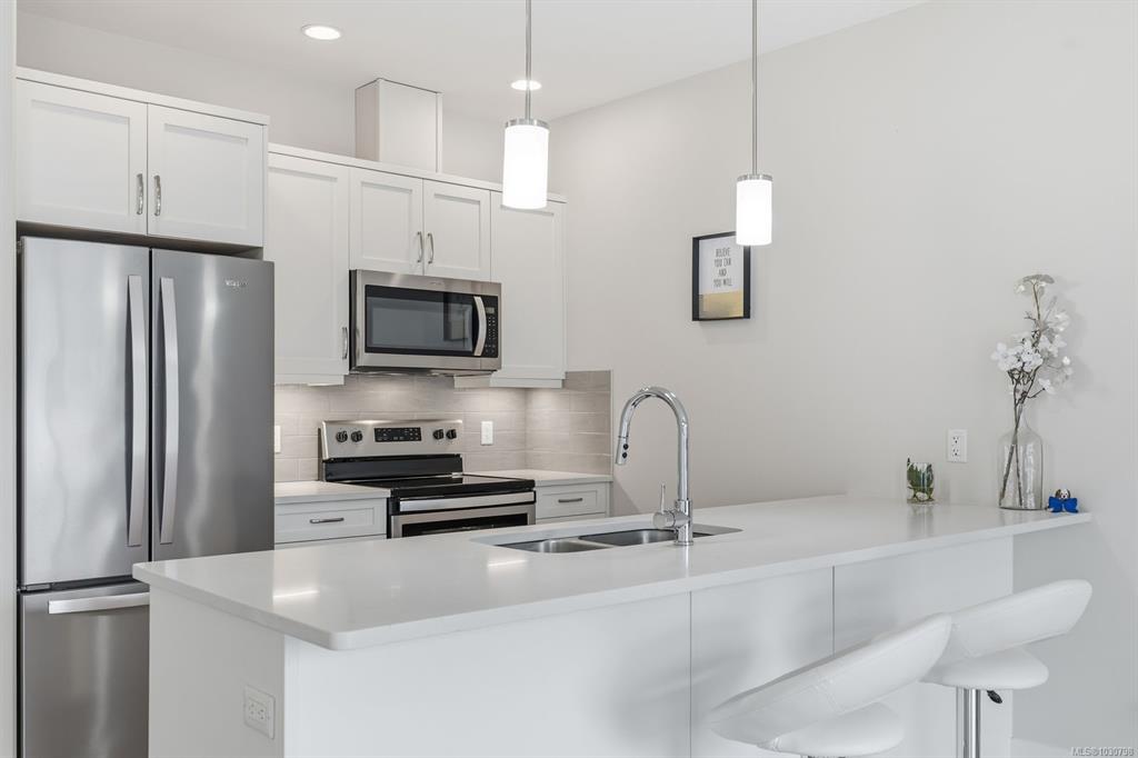 Welcome to this centrally located and meticulously maintained townhome in the heart of Nanaimo. The lower level features easy garage access with two extra storage rooms, one of which would be perfect for a mini shop. The main level is bright and open, featuring 9 foot ceilings, an eat-in style kitchen complete with stainless steel appliances and quartz countertops. Enjoy expansive Mount Benson views from the living room through the floor to ceiling windows. There is also a bathroom and bedroom on this level...