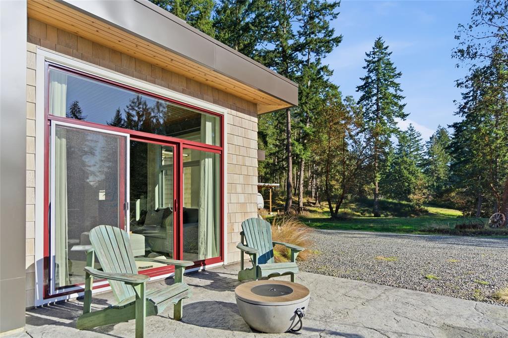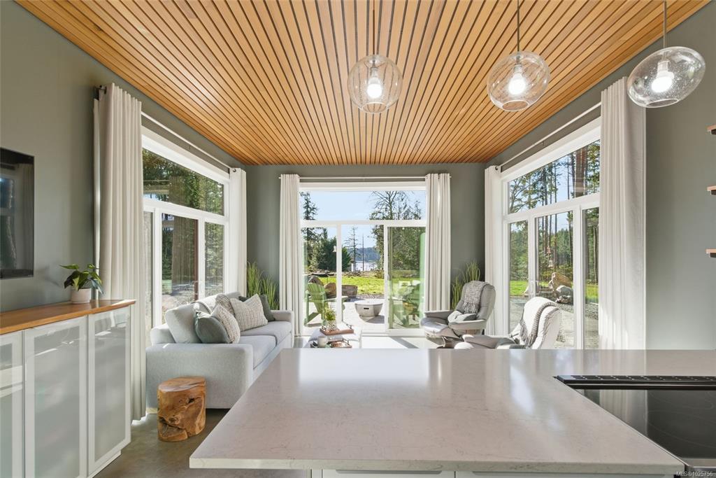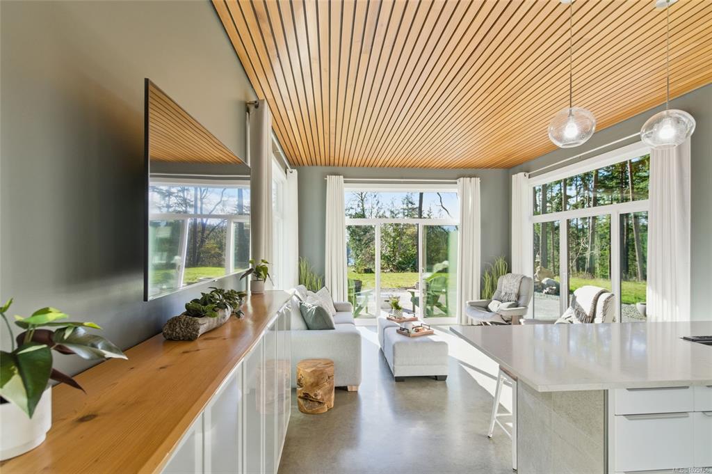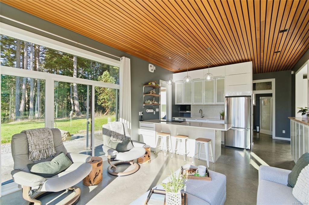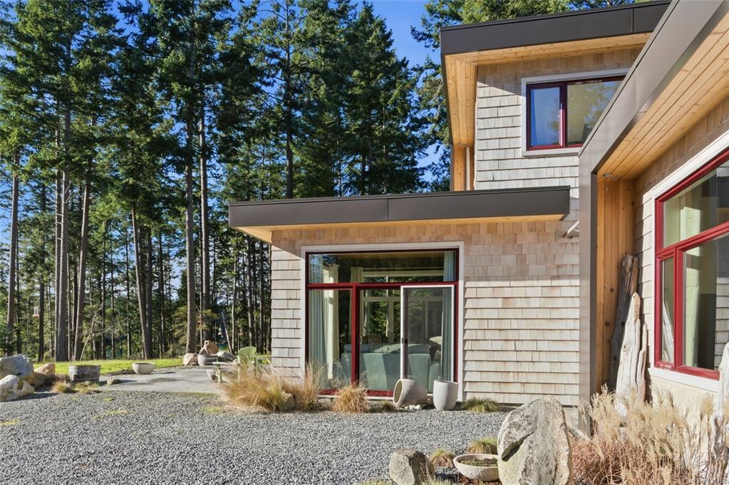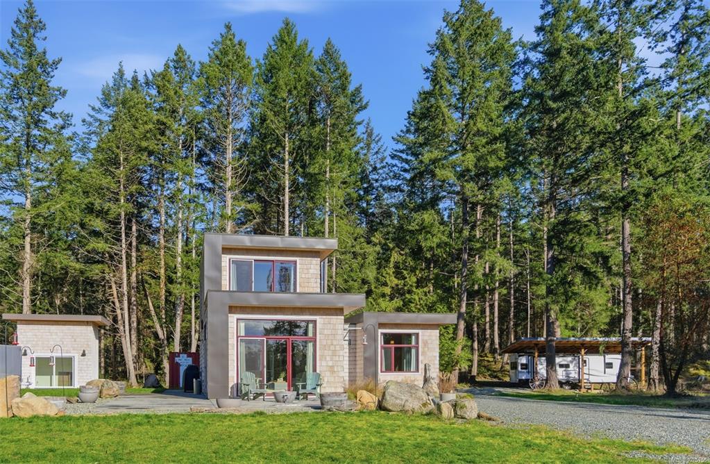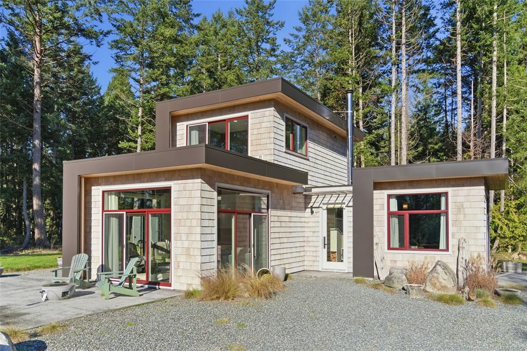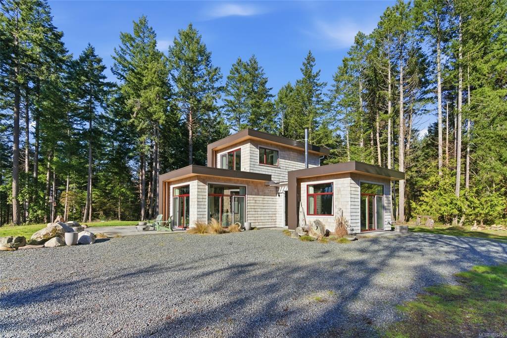 Tucked into the peaceful landscape of Gabriola’s sunny south end, this beautifully designed architectural 2-bedroom, 2-bathroom home offers a blend of modern comfort and relaxed island living. Thoughtfully positioned to capture natural light, the home features polished concrete floors with in-floor heating, 10-foot ceilings, and expansive walls of glass creating a bright, welcoming space year-round. Set on nearly 6 acres, the property offers privacy, open sunny areas, and gentle ocean views overlooking Degn...