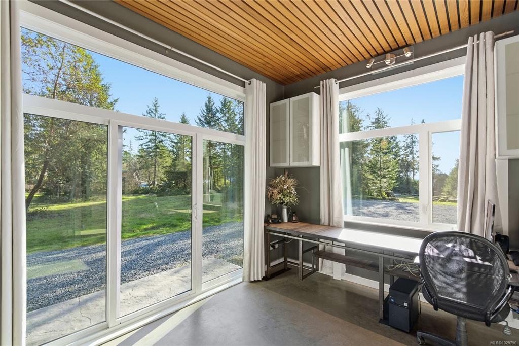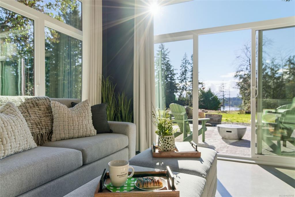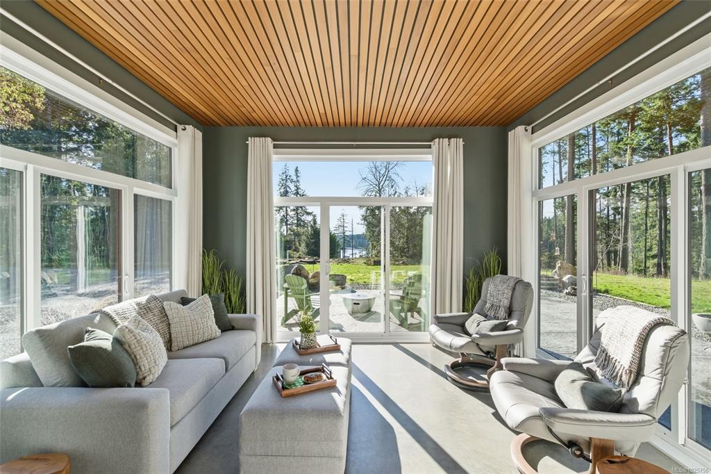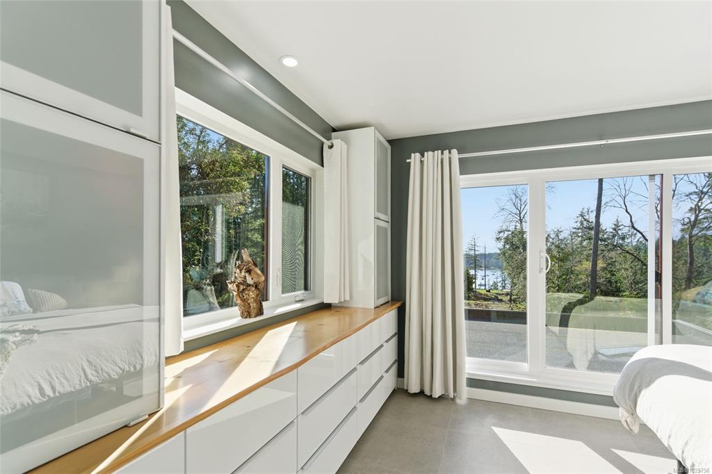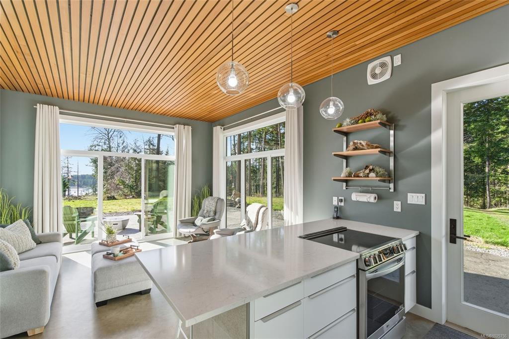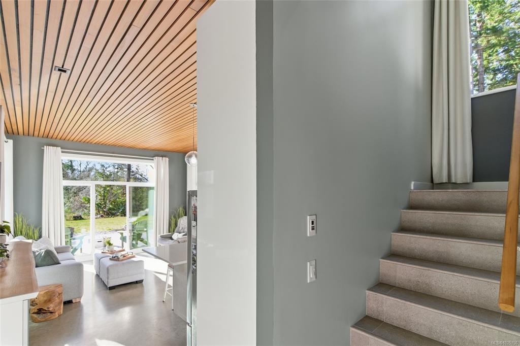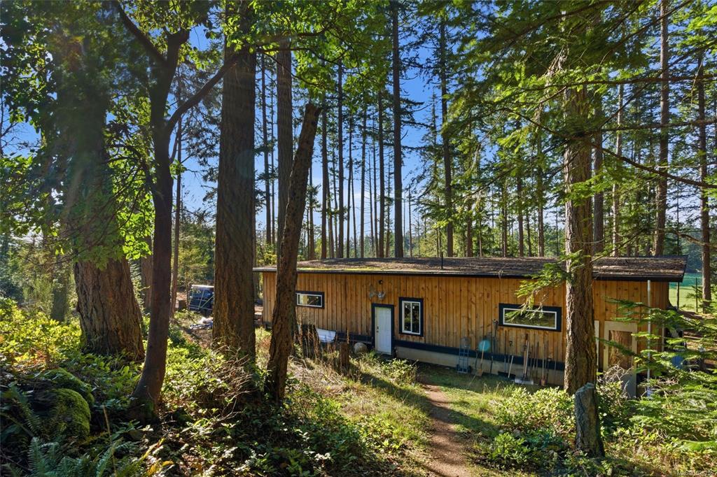 Tucked into the peaceful landscape of Gabriola’s sunny south end, this beautifully designed architectural 2-bedroom, 2-bathroom home offers a blend of modern comfort and relaxed island living. Thoughtfully positioned to capture natural light, the home features polished concrete floors with in-floor heating, 10-foot ceilings, and expansive walls of glass creating a bright, welcoming space year-round. Set on nearly 6 acres, the property offers privacy, open sunny areas, and gentle ocean views overlooking Degn...