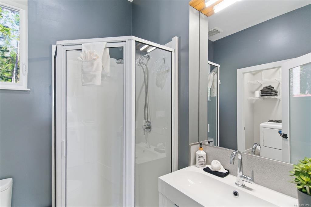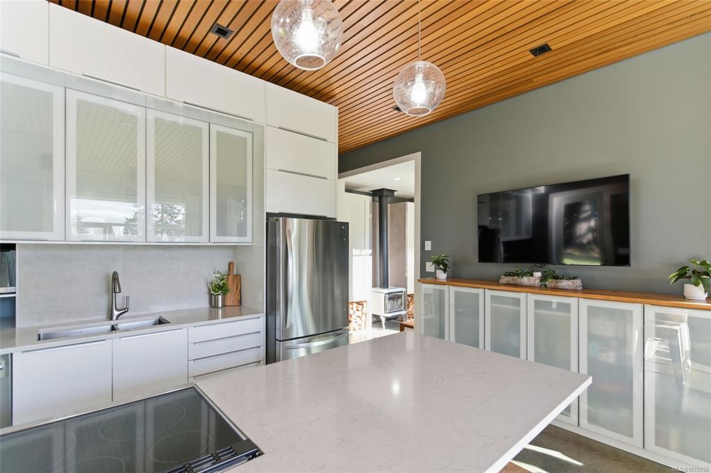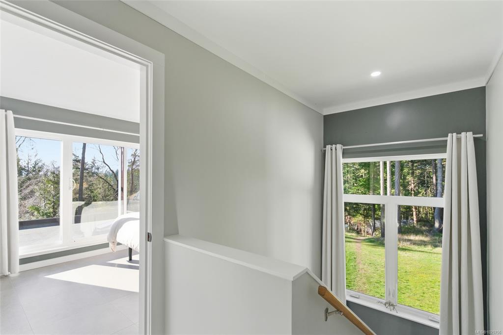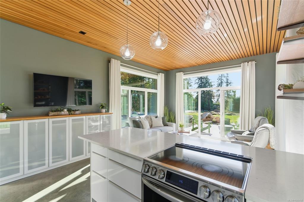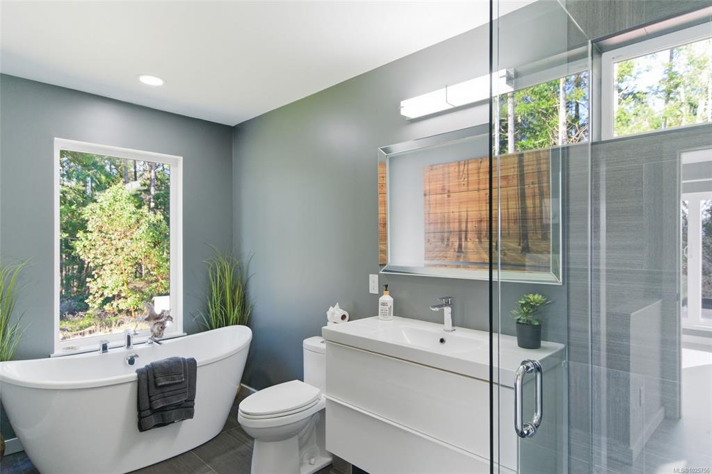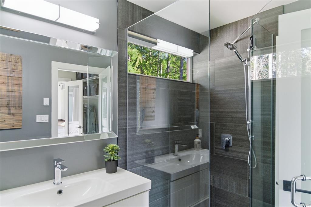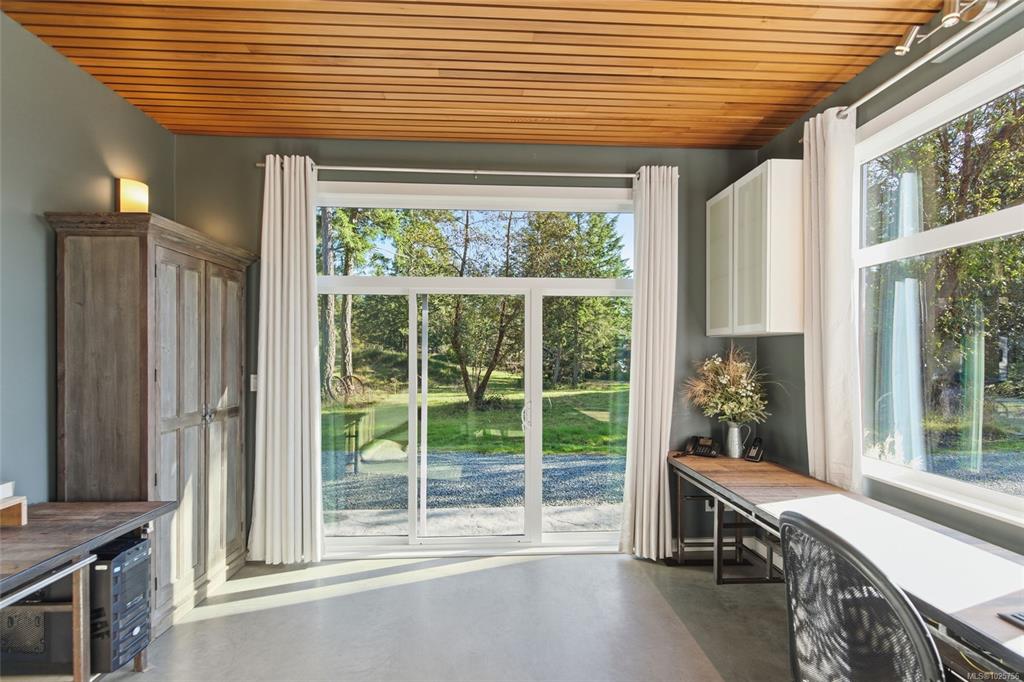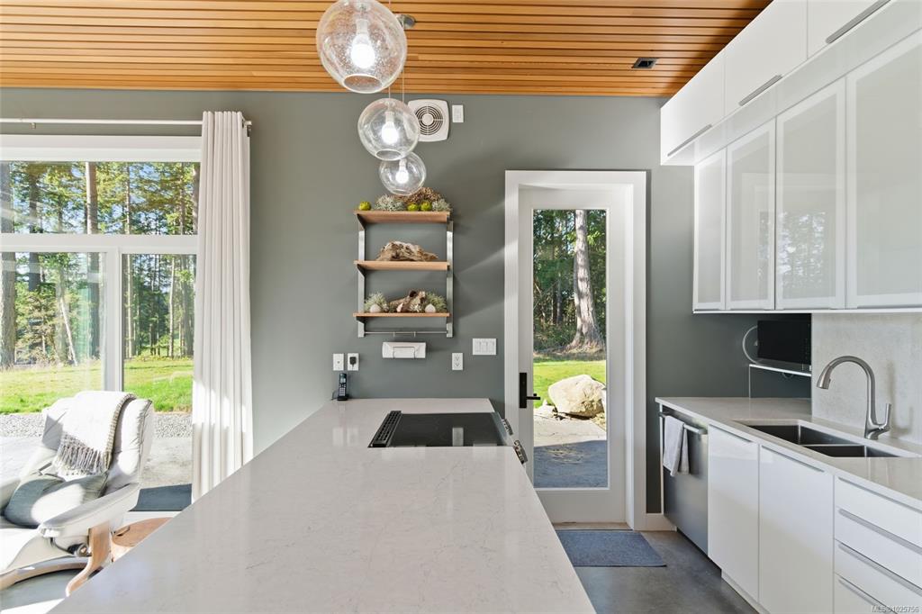 Tucked into the peaceful landscape of Gabriola’s sunny south end, this beautifully designed architectural 2-bedroom, 2-bathroom home offers a blend of modern comfort and relaxed island living. Thoughtfully positioned to capture natural light, the home features polished concrete floors with in-floor heating, 10-foot ceilings, and expansive walls of glass creating a bright, welcoming space year-round. Set on nearly 6 acres, the property offers privacy, open sunny areas, and gentle ocean views overlooking Degn...