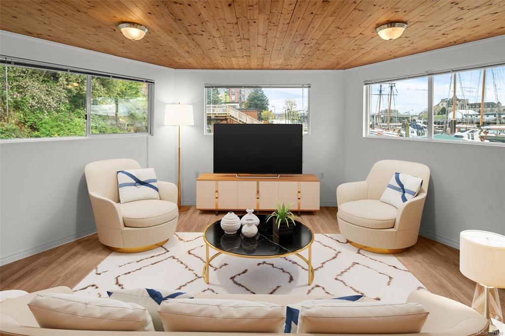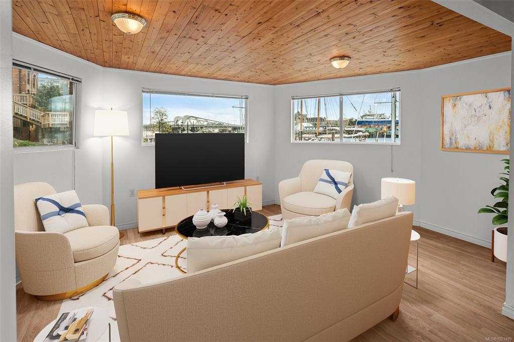 Welcome to rare waterfront float home living in the beautiful Victoria harbour. This 3 bedroom, 2 bathroom vessel offers the opportunity to enjoy Victoria inner harbour living at a fraction of the cost. The first level enters into a spacious foyer, with a spacious primary bedroom equipped with a built-in stone fireplace & 2-piece ensuite bathroom. The first level also offers an office space, laundry & storage room, as well as a second bedroom. The well-appointed main level includes a gourmet kitchen w/stunn...