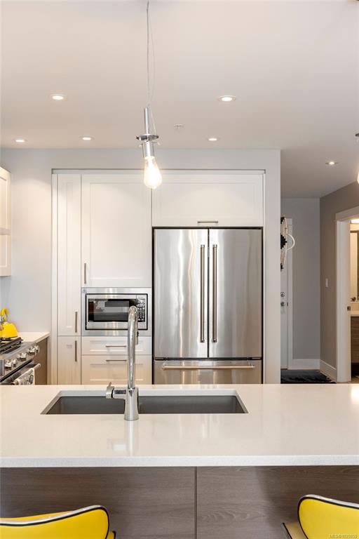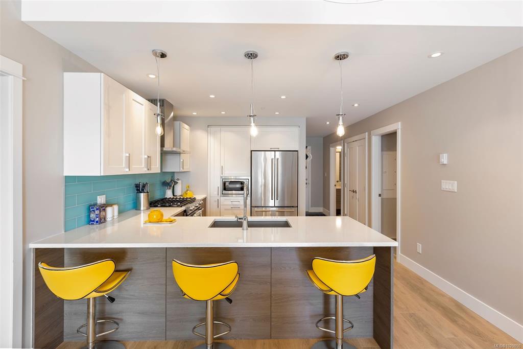 Waterfront living at its finest at The Residences on Sooke Harbour! This spacious 3-bedroom condo offers an exceptional location right on the water, with sweeping ocean views, marina activity, and coastal mountains visible from the balcony, living area, and primary bedroom. The bright, open-concept layout features over-height windows that flood the suite with natural light, enhancing its generous proportions and airy feel. A smart split-bedroom design provides added privacy, while quality finishes include e...