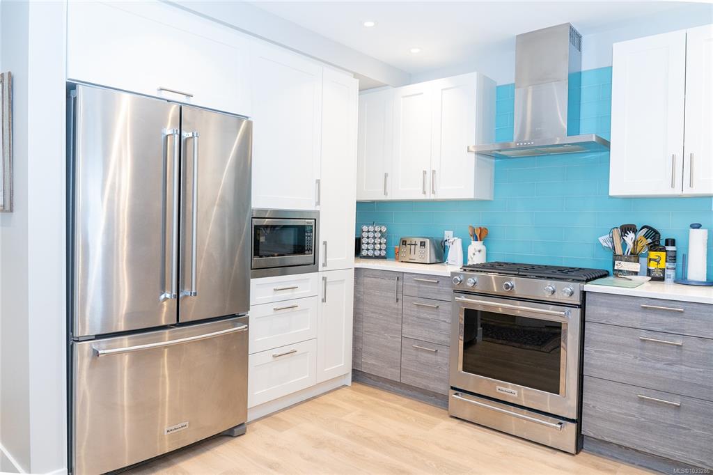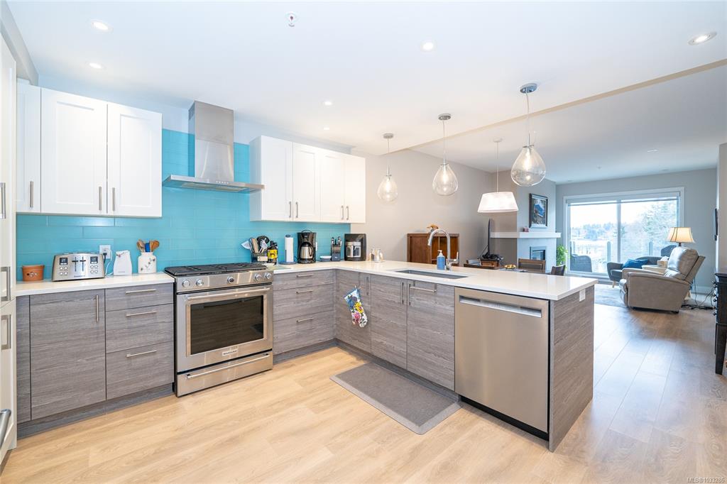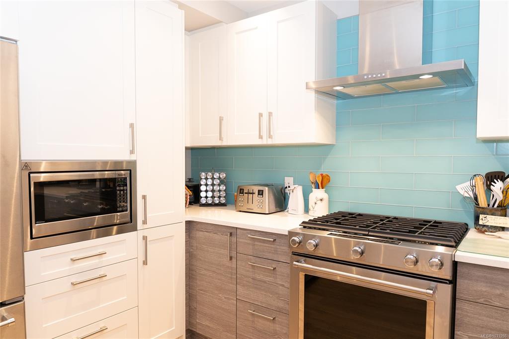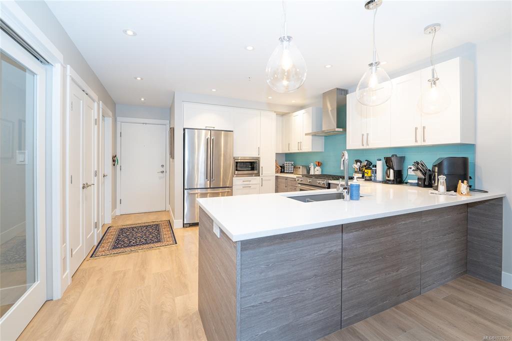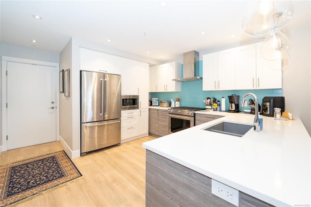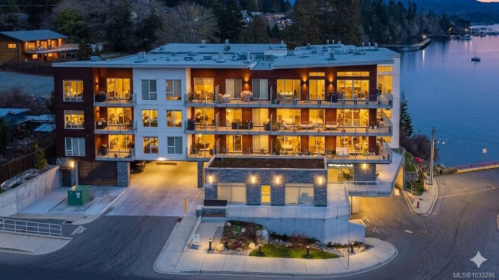 Enjoy refined oceanfront living in this oversized 2-bed+Den, 2-bath residence offering just under 900 sq. ft. of thoughtfully designed space. The open-concept layout features a stylish kitchen with stainless KitchenAid appliances, gas range, quartz countertops, and seamless flow to the dining and living areas. Step outside to an expansive 263 sq. ft. patio with gas BBQ hookup—ideal for entertaining while taking in ocean and mountain views. Quality finishes include oak hardwood flooring, 9-ft ceilings, and o...