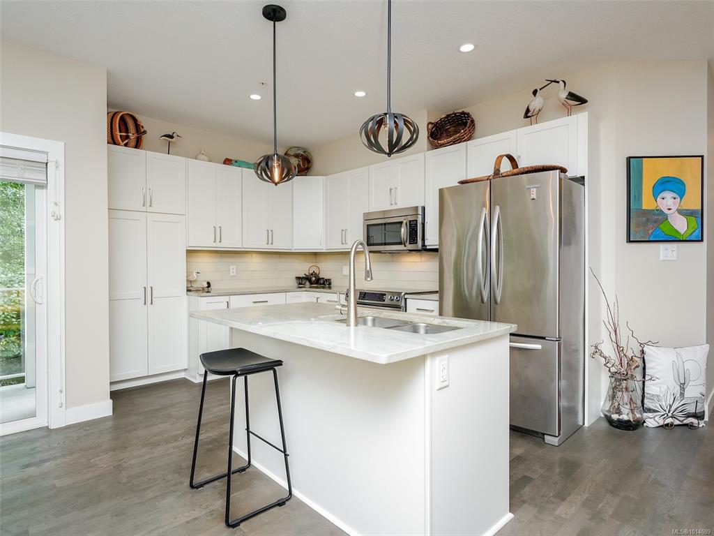 Welcome to high-end, care-free living at 'The Cannery', one of Cowichan Bay's finest developments. As you step into this bright, modern, open & airy living space, you are first met with how entirely private this space is. With 1119 sqft, 2 beds & 2 baths, you will love the views out to the green space & a perfect little creek, you can live centrally yet enjoy the sounds of uninterrupted nature every day. This condo features original builder upgraded finishings throughout, 9-foot ceilings, a gas fireplace, a...