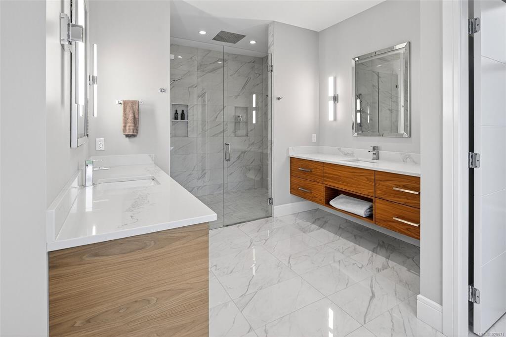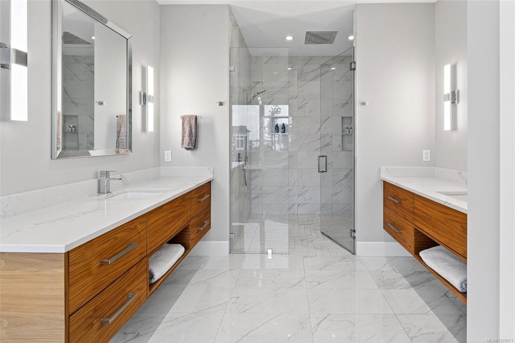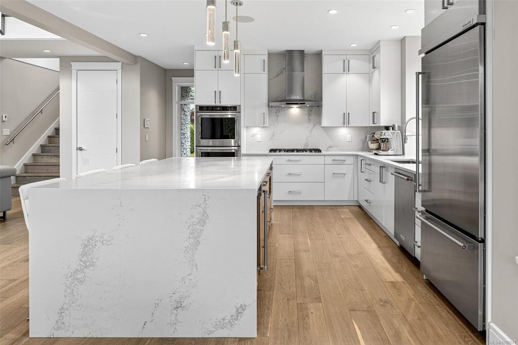 Breathtaking Custom Built Modern Home. Ocean views and Stunning architecture. Large flat corner lot with south facing back yard provides the perfect foundation for this luxury property. From the Gorgeous gourmet kitchen and pantry to the sprawling spa like master ensuite and spacious living room with 21' ceilings, every aspect of this home is finished in a luxurious mix of wood, stone, glass, and steel. Enjoy luxury systems rarely seen at this price point including Radiant in floor heating throughout, Hot w...