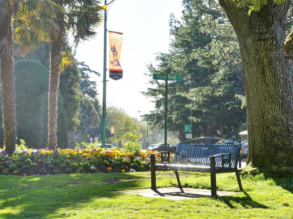 Set across from 183-acre Beacon Hill Park in the heart of James Bay, 188 on the Park offers an easy, walkable lifestyle just 2 blocks from Dallas Road waterfront. This bright corner suite enjoys pleasant outlooks toward the park & surrounding neighbourhood, with natural light throughout the day. The layout is well considered, featuring a comfortable living room with gas fireplace, spacious primary bedroom with walk-in closet & ensuite with separate shower, eat-in kitchen, & a dedicated dining area that work...