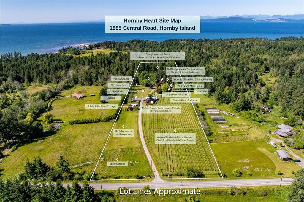 Boutique Vineyard Estate & Lifestyle Retreat on Canada’s West Coast: Hornby Heart offers a 10-acre turnkey opportunity combining a vineyard, glamping & culinary venue. The property features 4 acres of mature vines, along with a small-batch winery, tasting room, production facility & picnic license. Accommodations include 9 luxury glamping tents, a private home & a guest cabin. A timber-frame restaurant with a chef’s kitchen, Bravo Forno pizza oven, full-service bar, and indoor/outdoor dining areas provide a...
