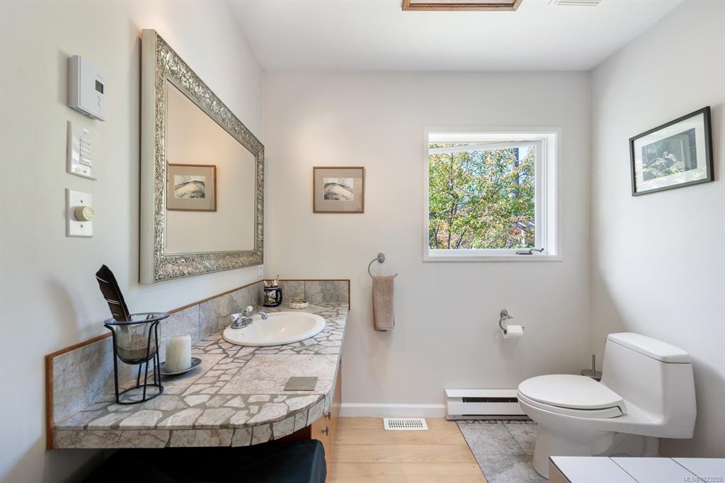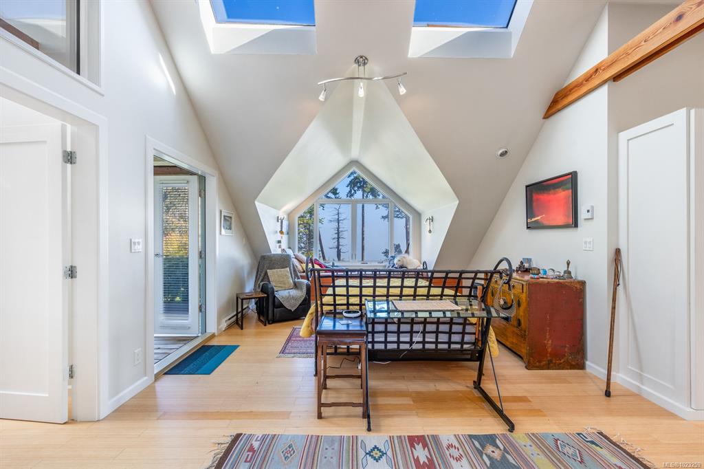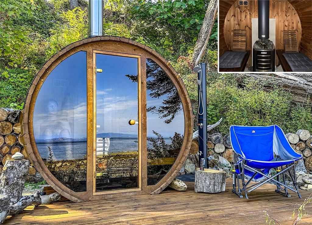 Stunning Denman Island oceanfront estate + Income powerhouse! This architect-designed home sits on 2 beautifully landscaped acres with 200' of pristine waterfront. The principal residence features soaring 25' vaulted ceilings, a gourmet kitchen with high end finishes, skylights, and breathtaking ocean views from large windows. A separate guest building offers 3 luxurious suites, each with private entry, kitchen, ocean views, fireplaces, in floor heating, decks, gardens, plus their own hot tub and cold plu...