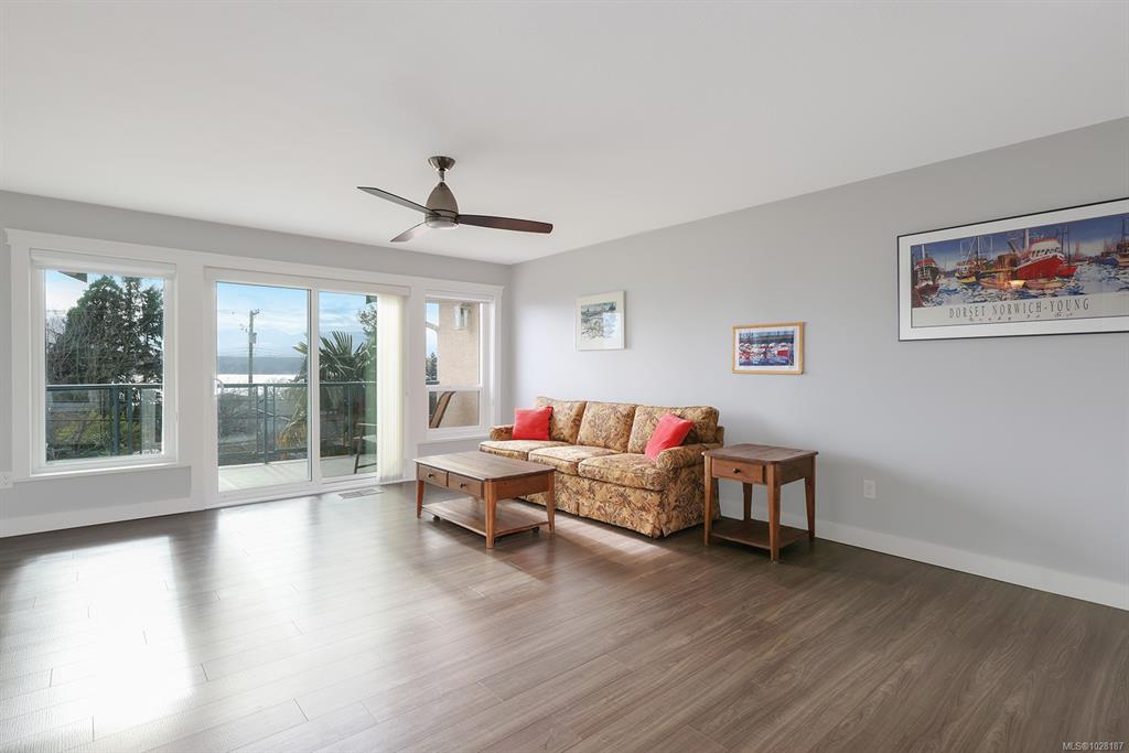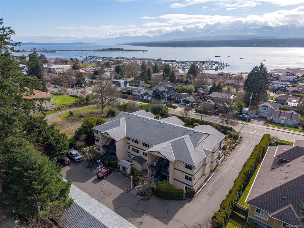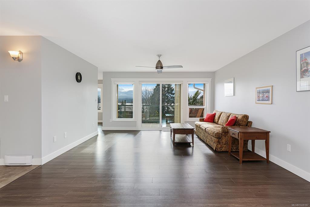 Ocean view top floor condo in the heart of Comox! Enjoy this prime location just steps from local shops, restaurants, and the marina. Large windows in the living space frame ever-changing views of the Comox Harbour and the snowcapped mountains beyond. Inside, the bright semi-open layout offers comfortable living with laminate flooring throughout, plenty of storage including a pantry, and two well-sized bedrooms. The 55+ adult-oriented complex is professionally managed and maintained, and has recently upgrad...