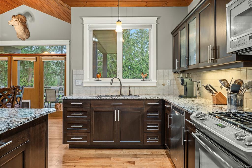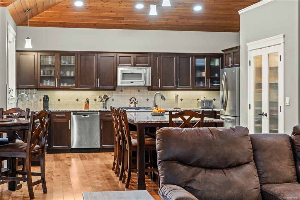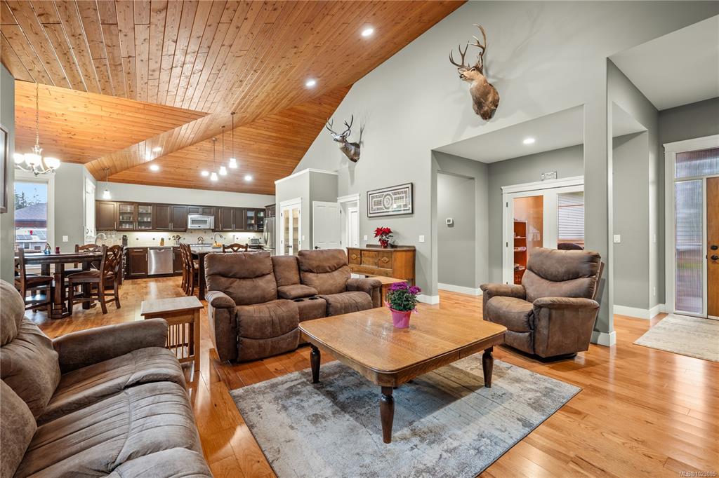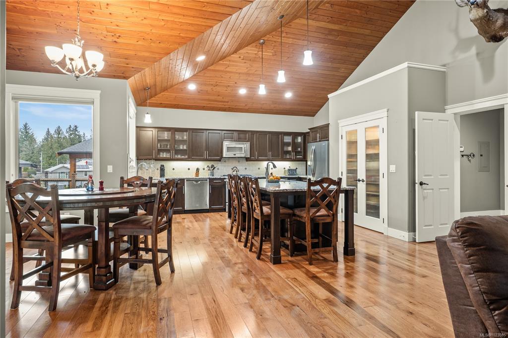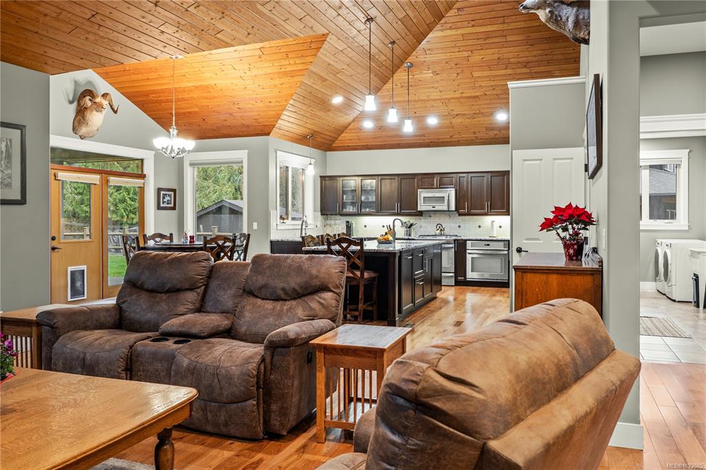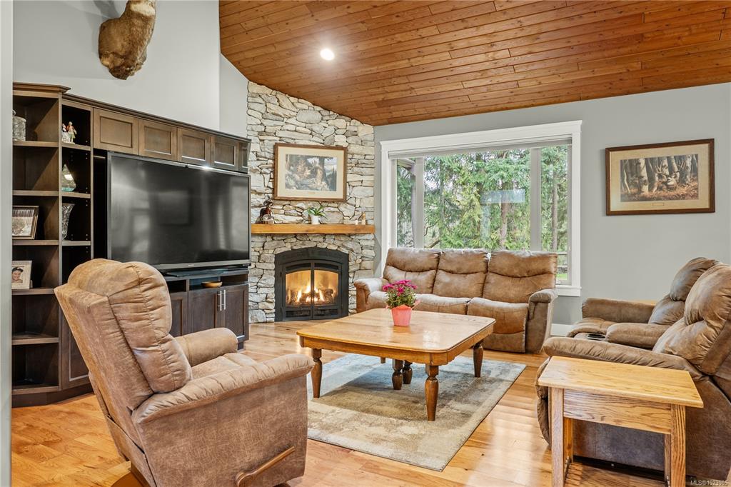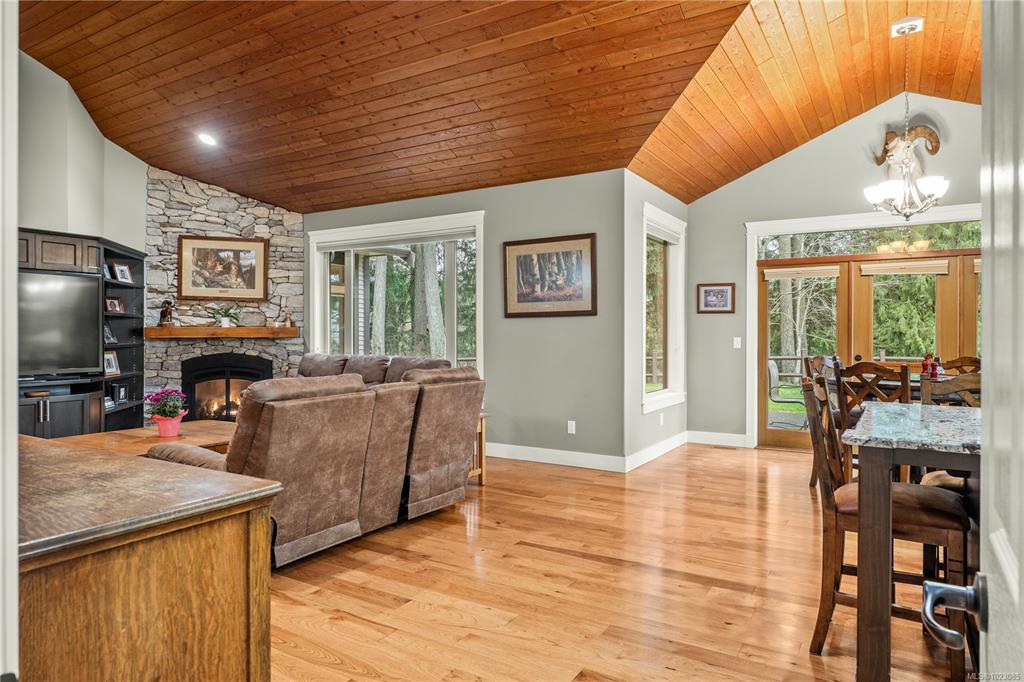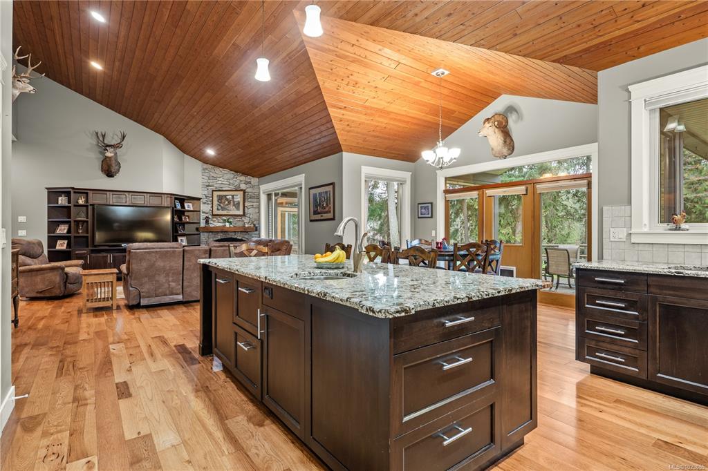 Tucked away in a quiet Nanaimo cul-de-sac, this well maintained 2011 custom-built rancher offers space, privacy, and comfort on a 0.83-acre lot. Vaulted wood ceilings and warm wood flooring highlight the open-concept living area, complete with a cozy gas fireplace ideal for both everyday living and entertaining. The spacious kitchen features granite countertops, double wall ovens, a large pantry, and an extra-long island that anchors the space and makes hosting effortless. Central heating and air condition...