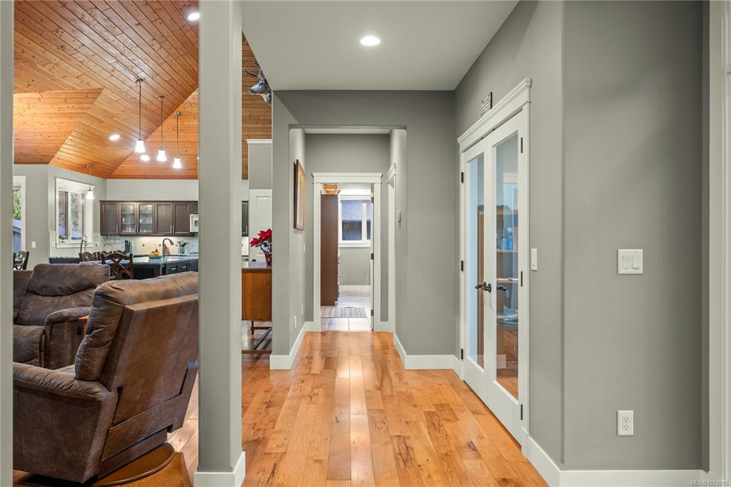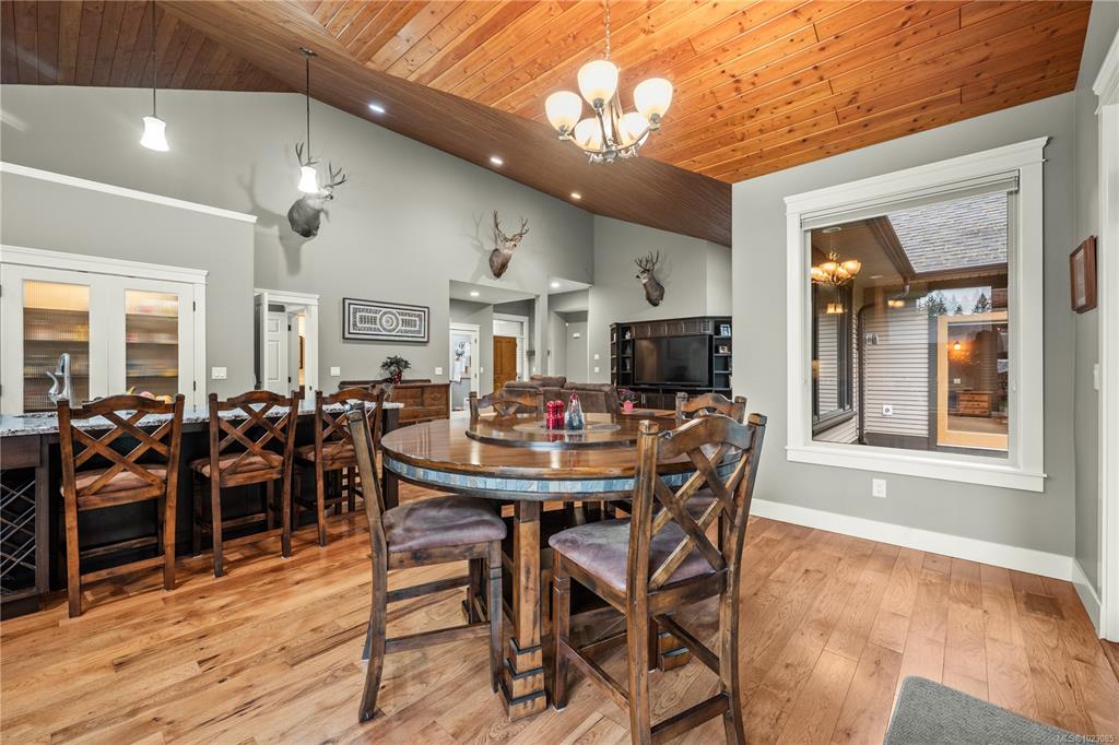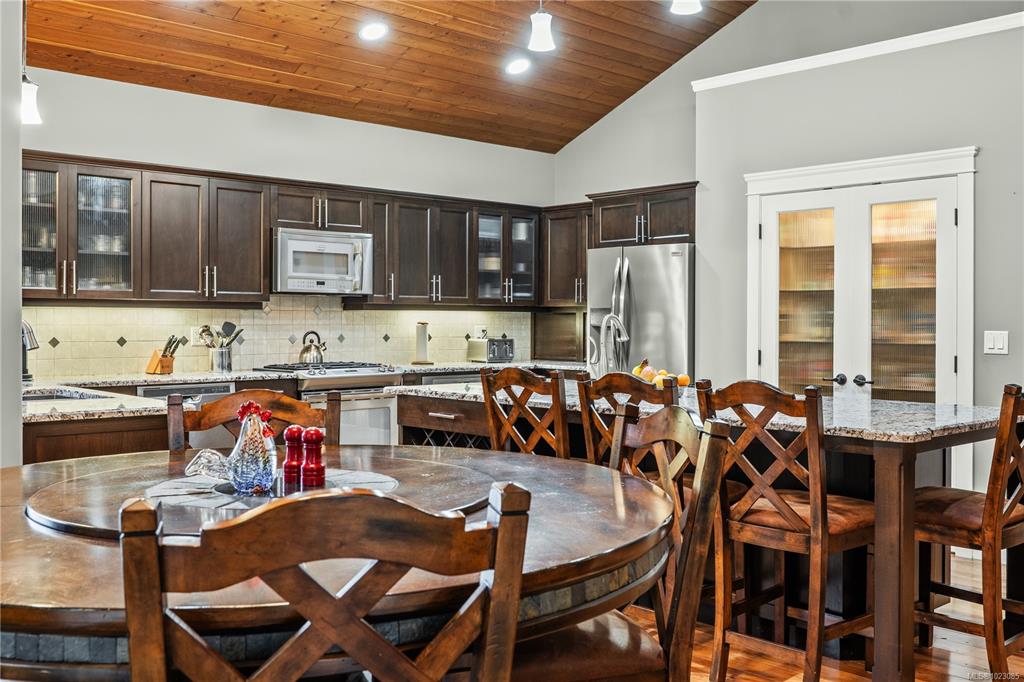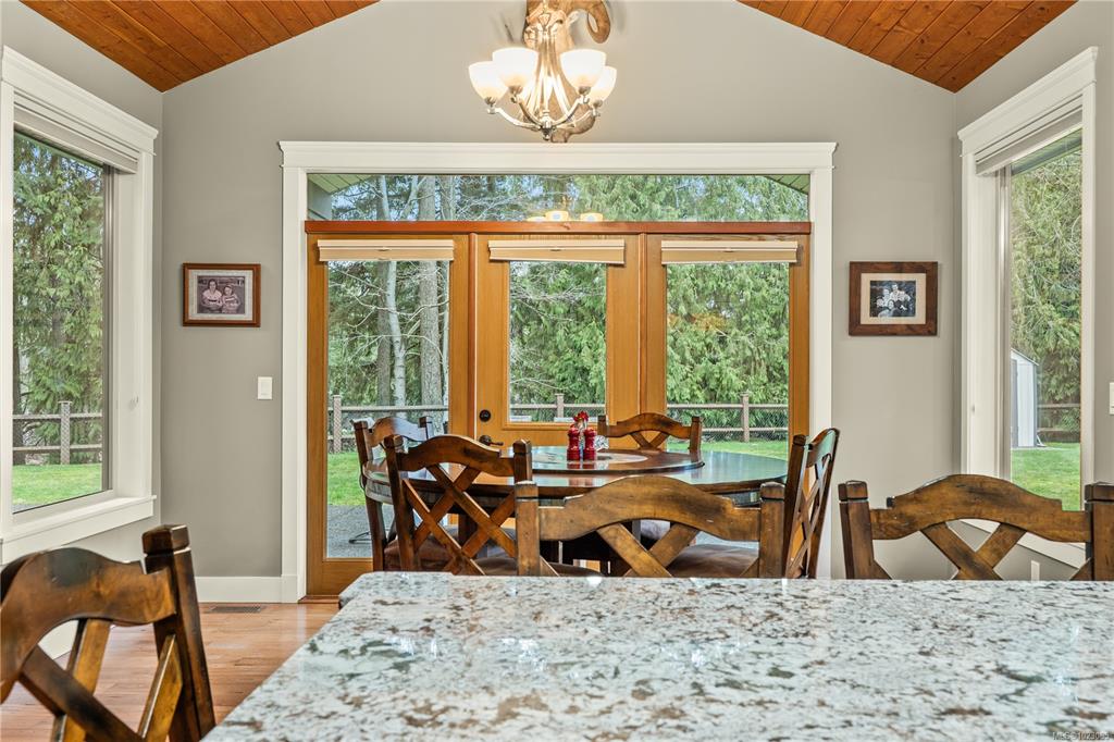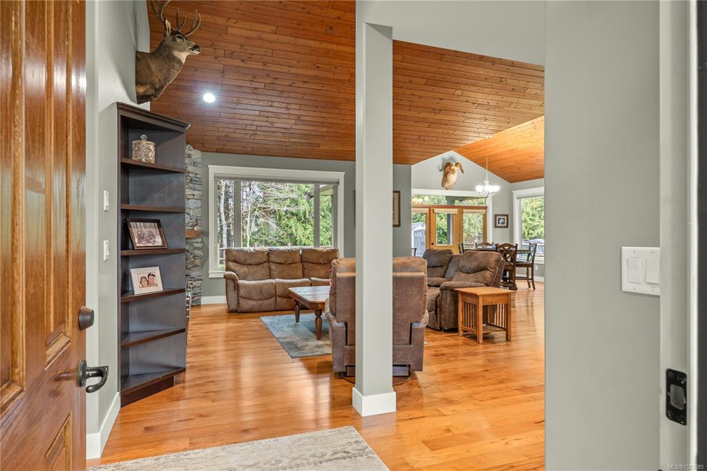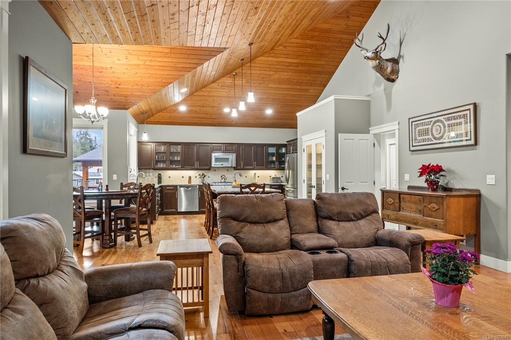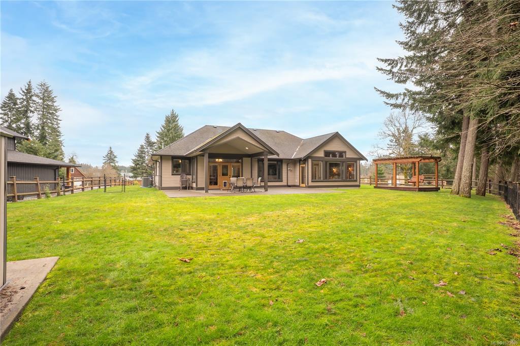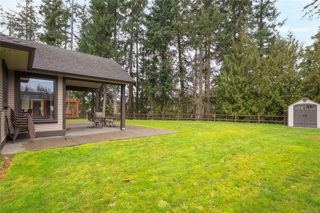 Tucked away in a quiet Nanaimo cul-de-sac, this well maintained 2011 custom-built rancher offers space, privacy, and comfort on a 0.83-acre lot. Vaulted wood ceilings and warm wood flooring highlight the open-concept living area, complete with a cozy gas fireplace ideal for both everyday living and entertaining. The spacious kitchen features granite countertops, double wall ovens, a large pantry, and an extra-long island that anchors the space and makes hosting effortless. Central heating and air condition...