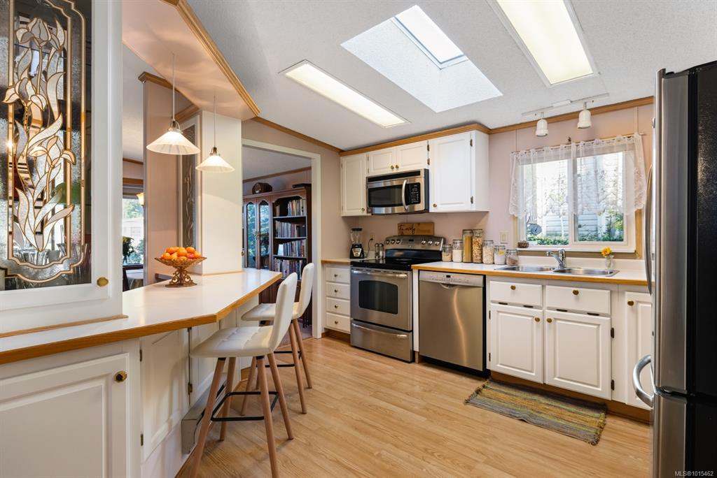 Beautifully maintained double-wide home in the highly sought-after 55+ Country Park Village. This spacious 2 bedroom, 2 bathroom home offers a bright, functional layout with generous living and dining areas plus an office nook. The kitchen features stainless steel appliances including a new dishwasher, plenty of cabinetry, abundant counter space, and a skylight that fills the room with natural light. The primary bedroom includes ample closet space and a 4pc ensuite with a separate shower and relaxing soaker...