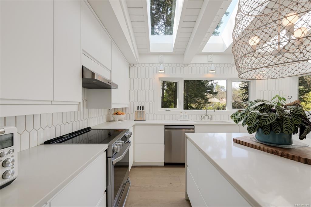 Stunning Custom Home – Private, Energy-Efficient Coastal Retreat Tucked in a tranquil, secluded setting, this beautifully reimagined mid-century home blends quiet luxury & modern functionality. Just a 10-min walk to 3 beaches & a scenic park, it offers nature access plus proximity to shops, dining & Uvic. Taken back to the studs, and transformed to a modern, elegant home, featuring premium finishes in a serene, neutral palette. The light-filled main level living has vaulted ceilings w/ skylights & fireplace...