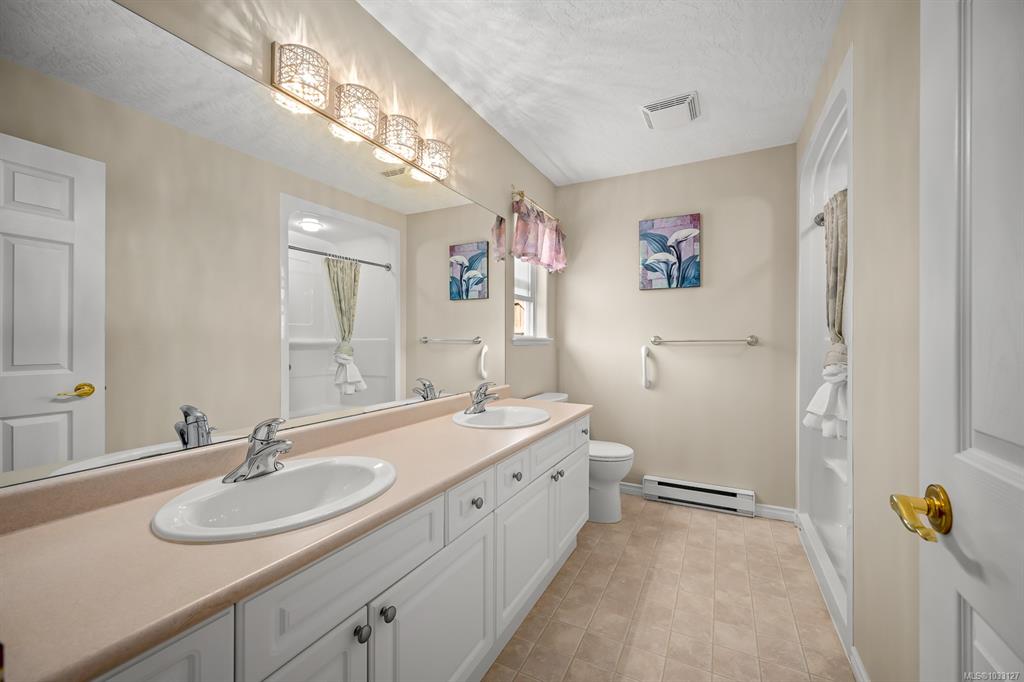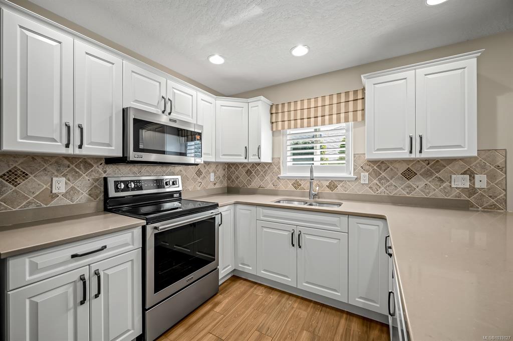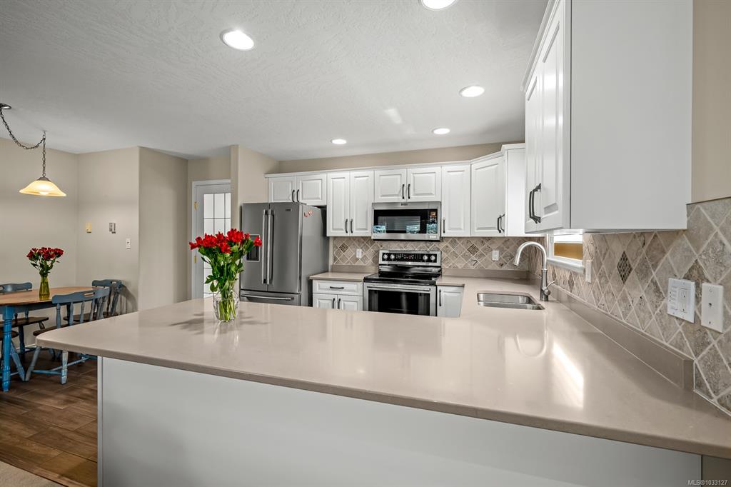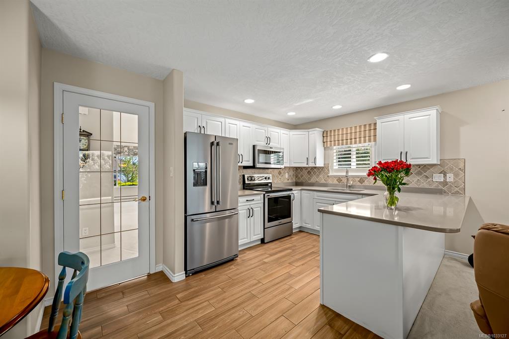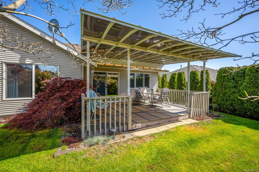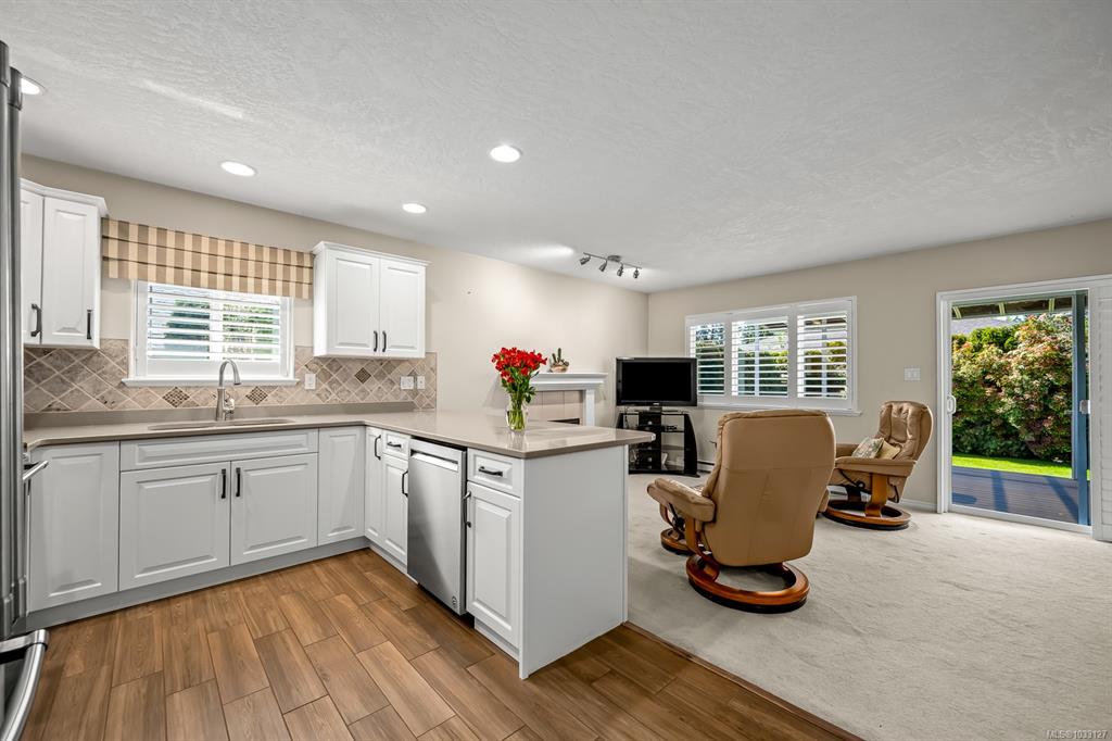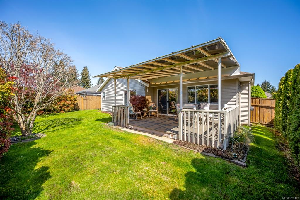 Well maintained rancher on a quiet no-through Rd in East Courtenay. With a custom floor plan this 3-bedroom, 2-bathroom home offers a spacious family room next to the kitchen with a sliding glass door opening onto the covered back deck. The recently remodelled kitchen features marble tile backsplash, quartz countertops, and stainless steel appliances. A walk-in closet and double-sink ensuite connect to the primary bedroom. The south-facing backyard is private, peaceful and highlighted by mature landscaping....