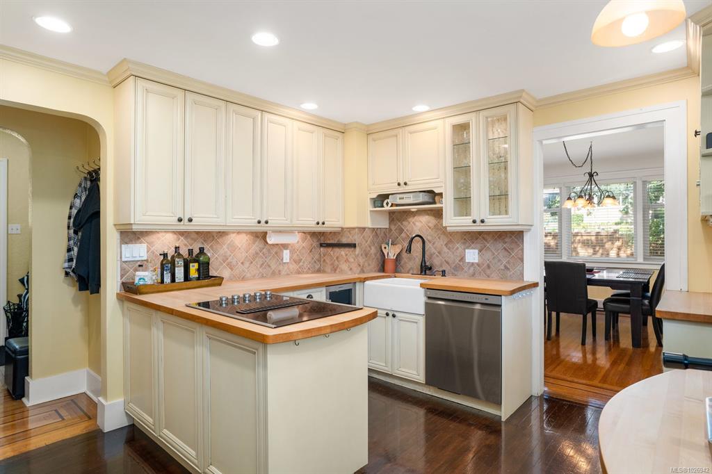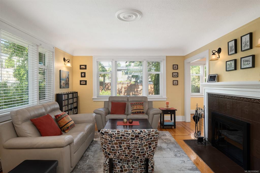 Welcome to 1959 Hampshire Road, a beautifully refurbished character home ideally located in desirable Oak Bay. This spacious residence offers 5 beds, 2baths within nearly 3,000 sq.ft. feet of bright, inviting living space. Newly refinished Oak floors with mahogany inlays& stained glass windows add timeless charm, complementing the generous living room centred around a wood-burning fireplace. Enjoy 529 sq.ft. of outdoor space across 3 decks, perfect for relaxing or entertaining. Additional highlights include...