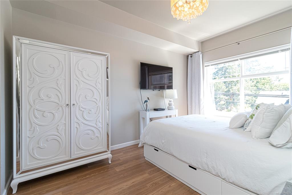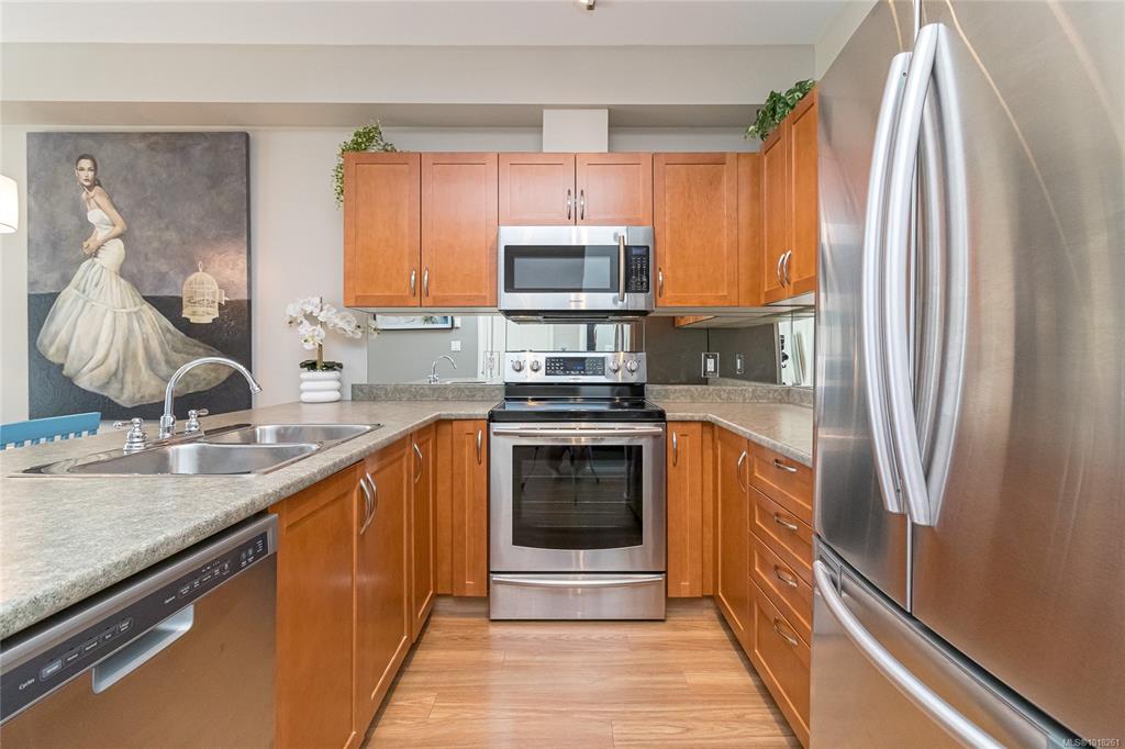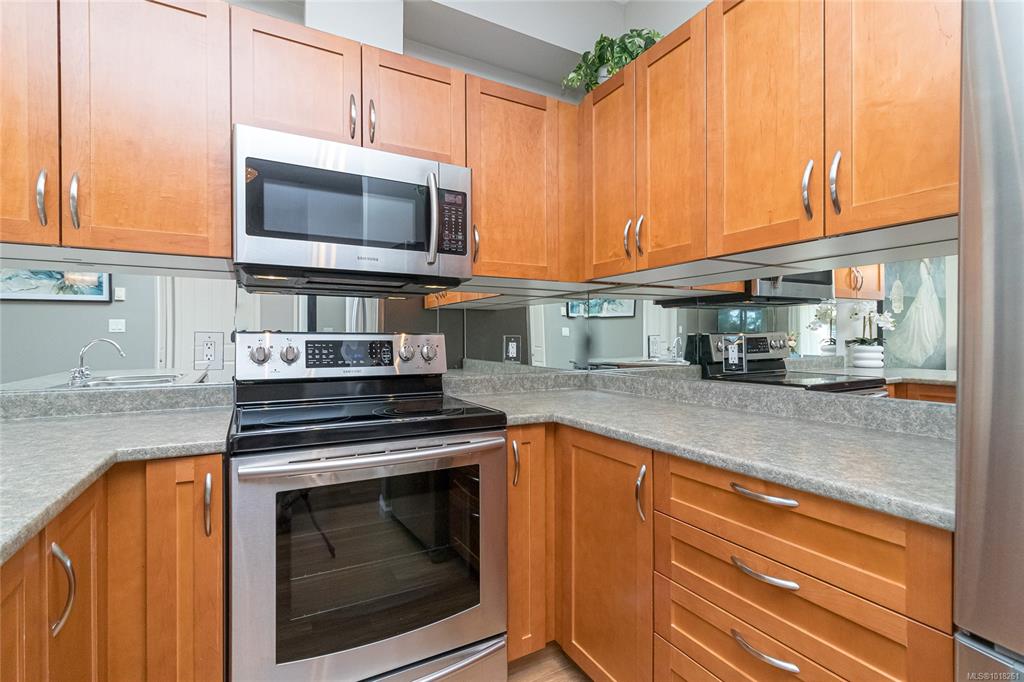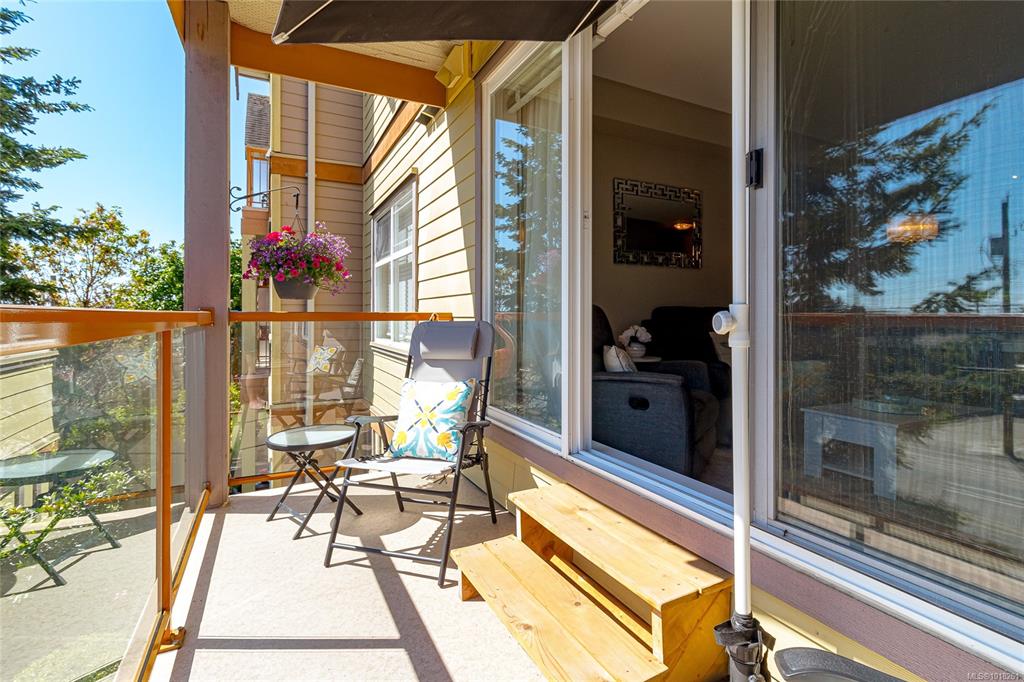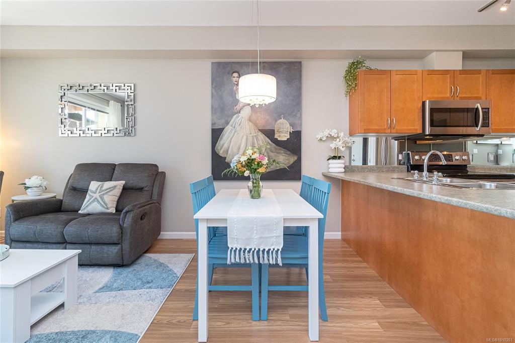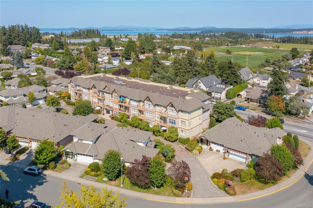 Discover modern comfort in this light-filled 1 bed, 1 bath condo perfectly situated in the heart of Central Saanich. The well-maintained residence boasts soaring 9 ft ceilings, a stylish kitchen with a built-in eating bar, gleaming stainless appliances, and a custom backsplash. Newer laminate flooring flows seamlessly throughout, complemented by updated fixtures and contemporary window coverings. Step onto the east-facing deck to savor your morning coffee while taking in distant ocean vistas. Amenities incl...