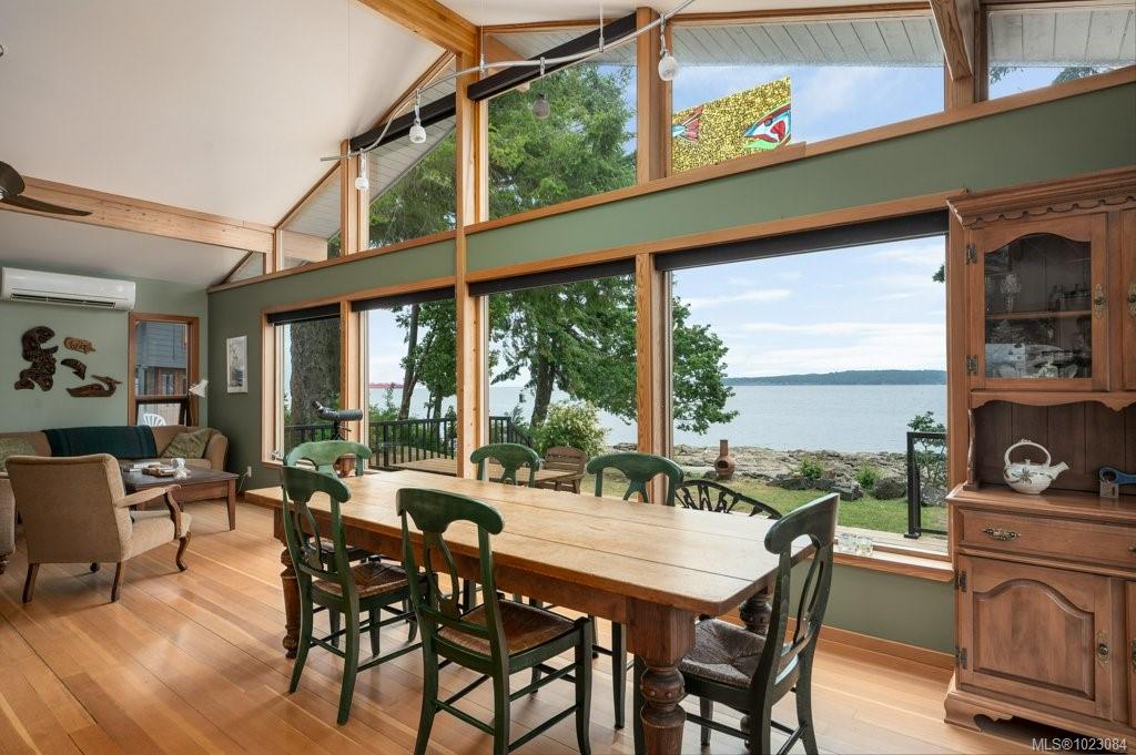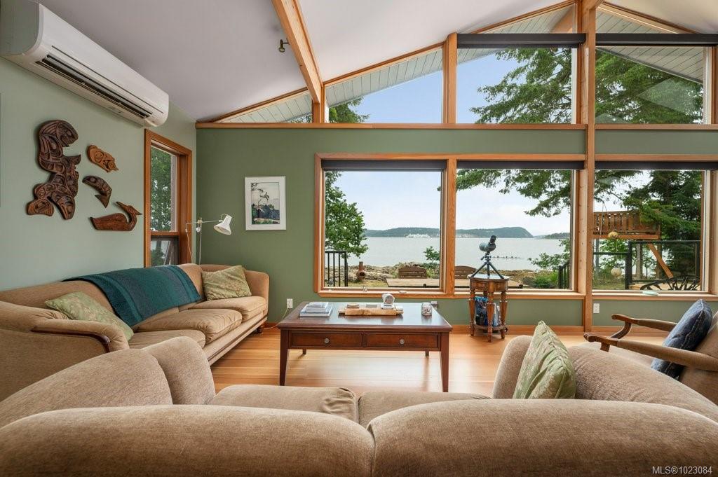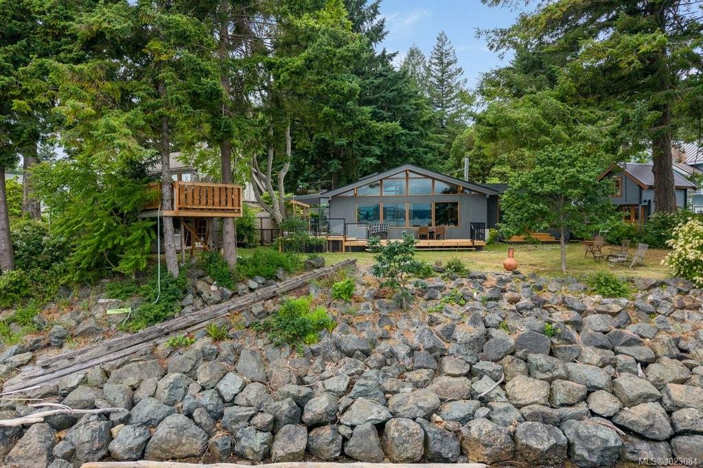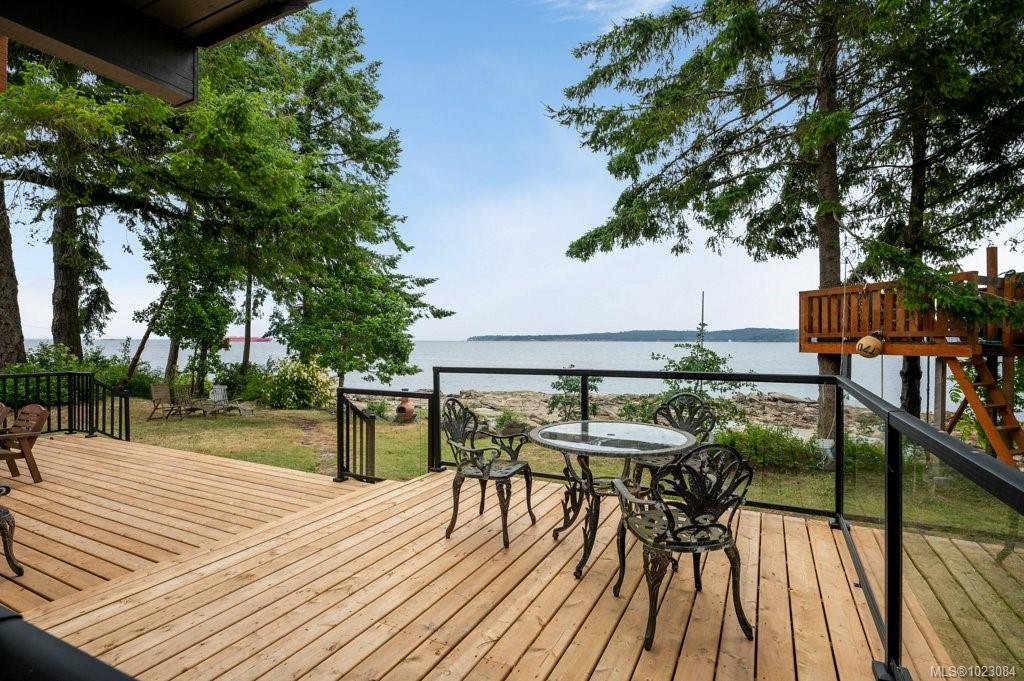 This stunning West Coast waterfront home enjoy views of the Salish Sea, Gabriola Isl & distant mainland mountains.Features include; radiant heated floors throughout, timbered ceilings, expansive picture windows in every living space, 2 heat pumps, 2 full baths including ensuite, well designed kitchen w/pull out pantry drawers, stainless appliances.The water facing primary suite has a walk/in closet, a private deck -just a few steps to the beach.2 secondary bedrooms are privately located facing a lush garden...
