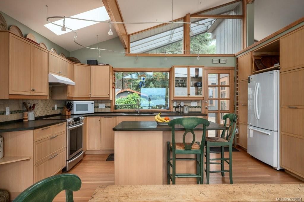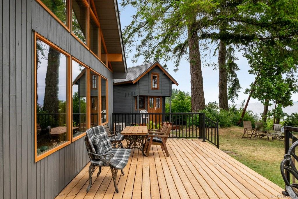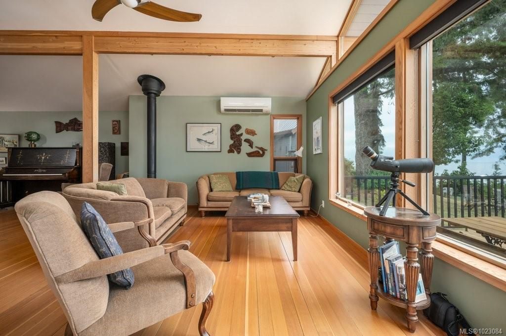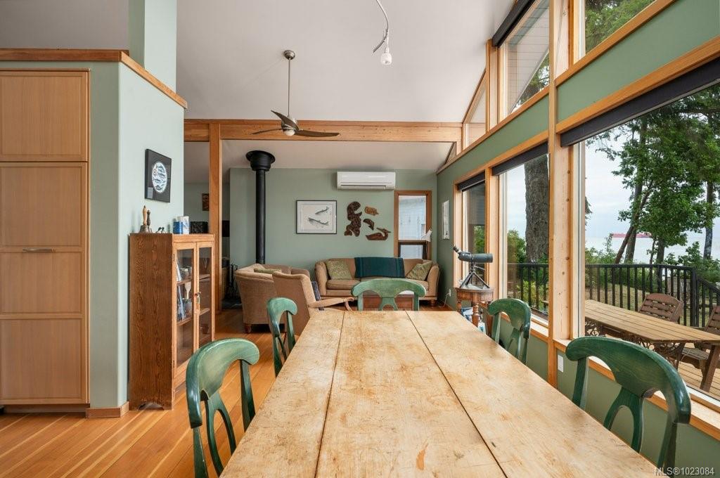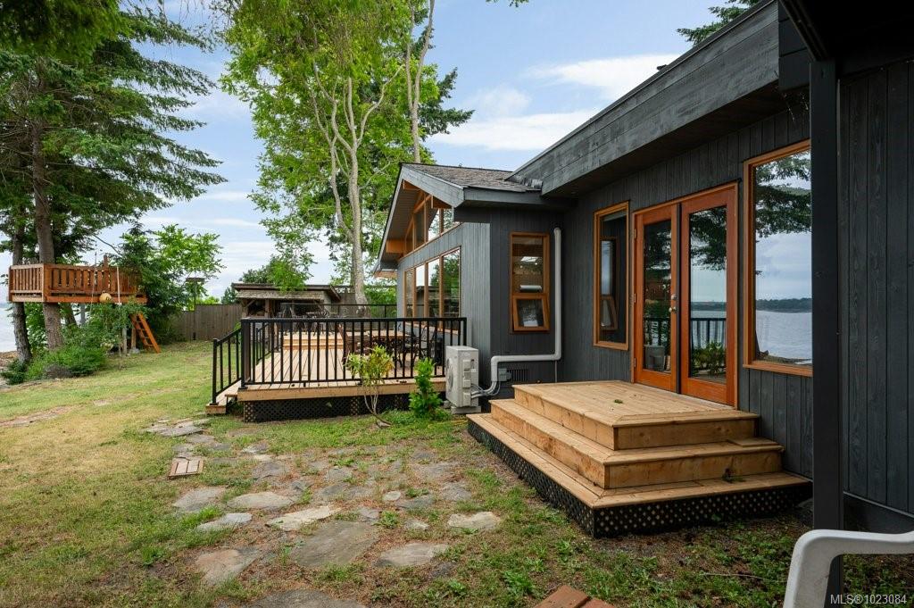 This stunning West Coast waterfront home enjoy views of the Salish Sea, Gabriola Isl & distant mainland mountains.Features include; radiant heated floors throughout, timbered ceilings, expansive picture windows in every living space, 2 heat pumps, 2 full baths including ensuite, well designed kitchen w/pull out pantry drawers, stainless appliances.The water facing primary suite has a walk/in closet, a private deck -just a few steps to the beach.2 secondary bedrooms are privately located facing a lush garden...