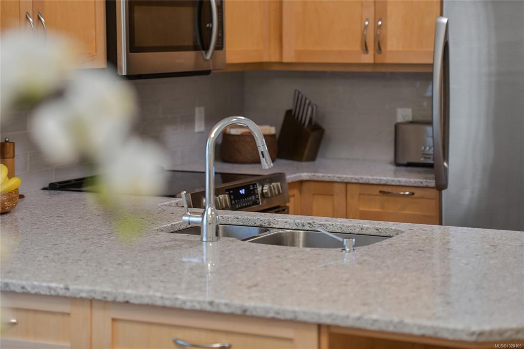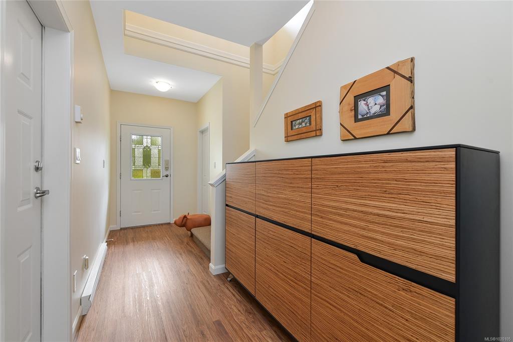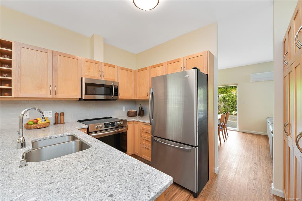 OPEN SUN Nov9: 1-3pm. Steps from Saanichton Village, on a quiet street in a walkable neighbourhood, this spacious END-UNIT townhome has it all! Substantially updated & meticulously maintained, this home boasts a MAIN-LEVEL Primary Bedroom, Ensuite with walk-in shower, heat-pump, double garage, security system, & a private fenced patio & garden. The kitchen features stone countertops, a huge window in the eating nook, wine rack, & updated appliances. Updated bathrooms have new vanities, toilets, mirrors & ha...