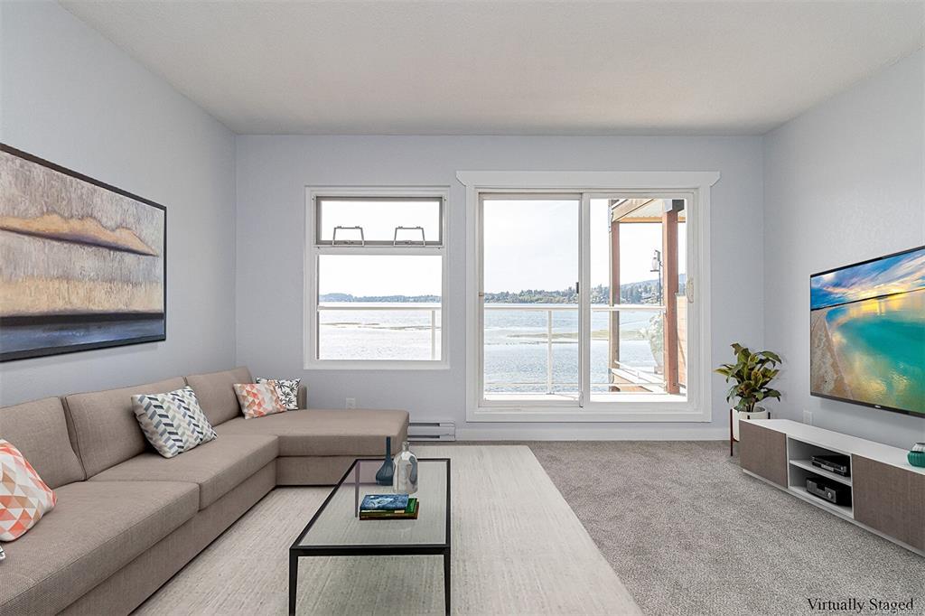 OCEANFRONT- AFFORDABLE! $389,000! UNOBSTRUCTED OCEAN VIEWS! IDEAL REVENUE CONDO! Be FIRST to Enjoy this BEAUTIFULLY RENOVATED, "MOVE-IN" READY, 2nd floor, One Bedroom Condo, in the "Victoria Side" of Sooke! Wonderful West-facing Views from Thermopane Windows! NEW Blinds included. Spacious Living Room offers Diverse Options for Utilization. Ocean Views from Kitchen with Custom Pass-Through to Living Room. Features: NEW Flooring (Vinyl Plank and Complementary Carpet), NEW Kitchen "Soft Close" Cabinetry, NEW A...