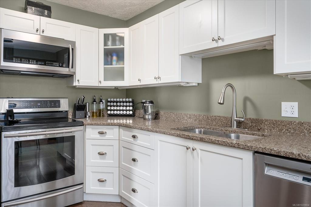 Immaculate and totally renovated, this lovely condo overlooks the tranquil forest area of Bowen Park. A perfect backdrop for your morning cup of coffee! Everything has been updated or replaced and now has cork flooring, updated kitchen and baths, fresh paint, heat pump for comfort in all seasons and so much more. The floor plan is ideal with 2 bedrooms including a large primary and ensuite plus a 2nd bedroom and full bathroom. The large living/dining area is perfect for even the largest of gatherings. P...