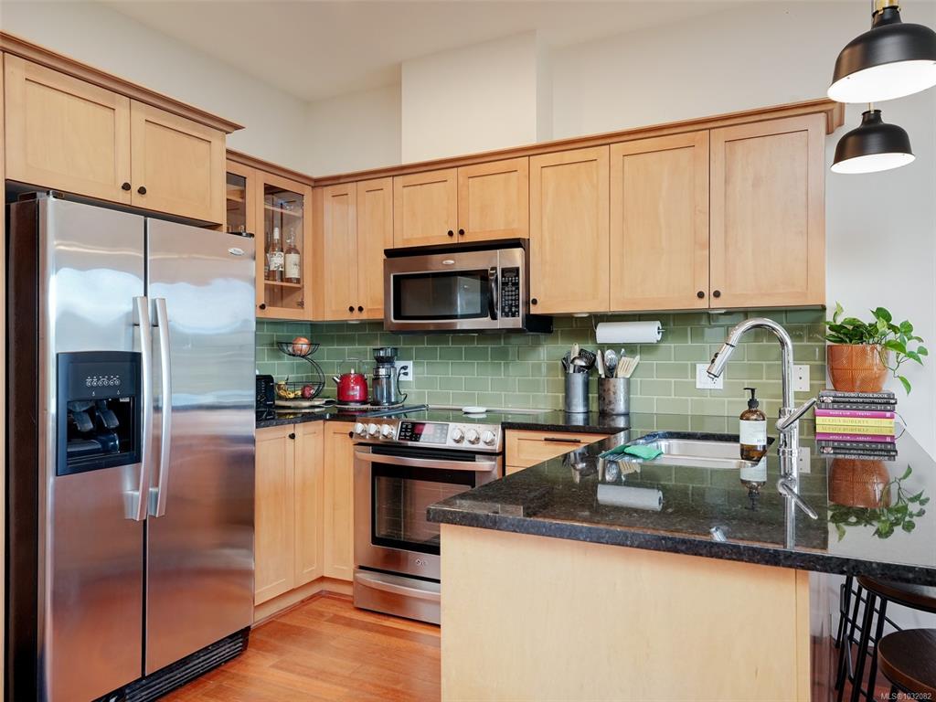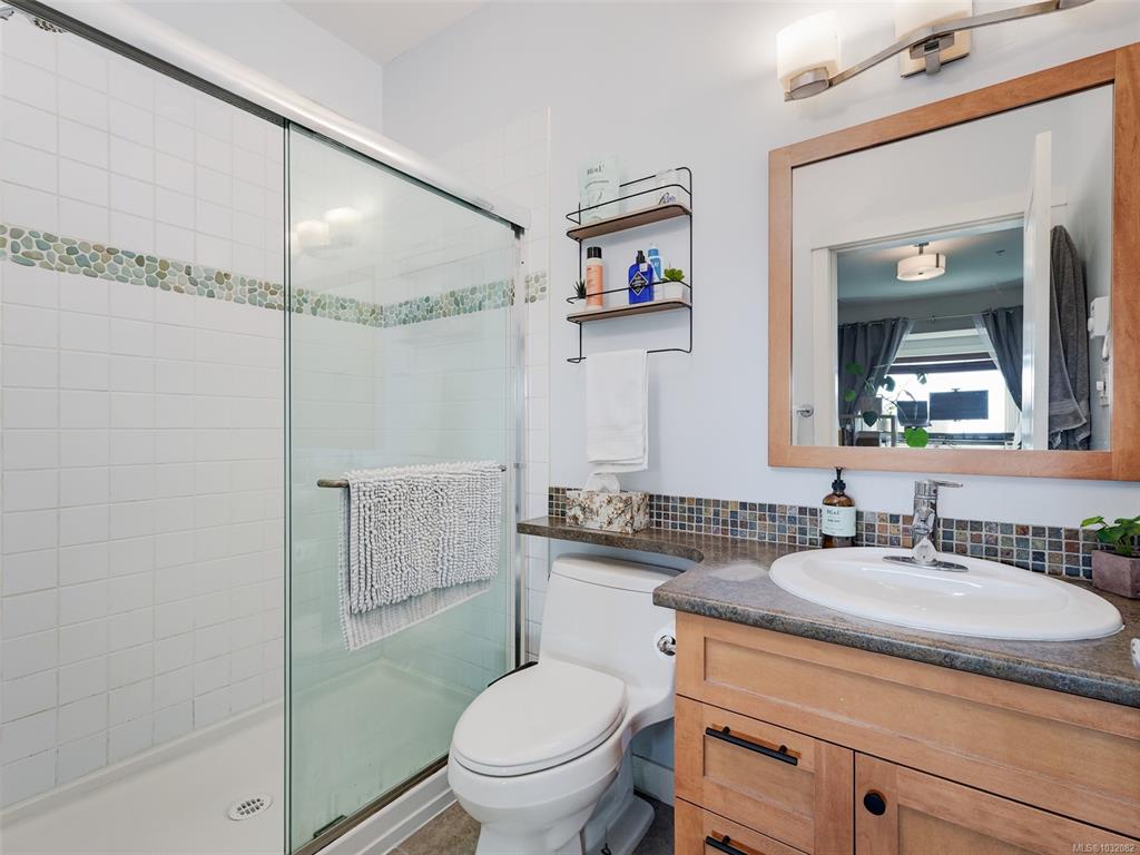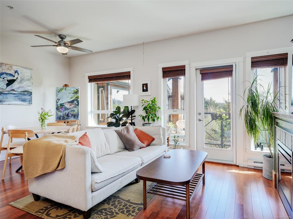 Top-floor, south-facing 2 bed, 2 bath condo in the heart of View Royal! Offering over 900 sq ft of well-designed living space, this bright and private suite overlooks the peaceful courtyard and enjoys great natural light throughout. The functional layout features an open-concept living and dining area, a spacious kitchen, and a primary bedroom with ensuite. Enjoy the convenience of in-suite laundry, secure underground parking, and access to the building’s fitness room. Ideally located just minutes from Thet...