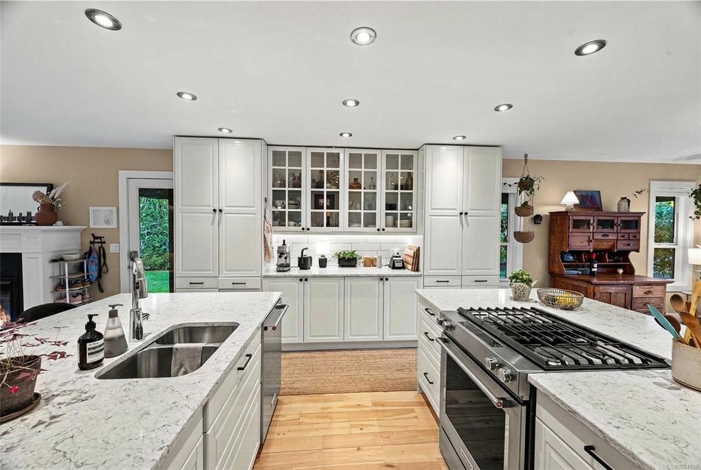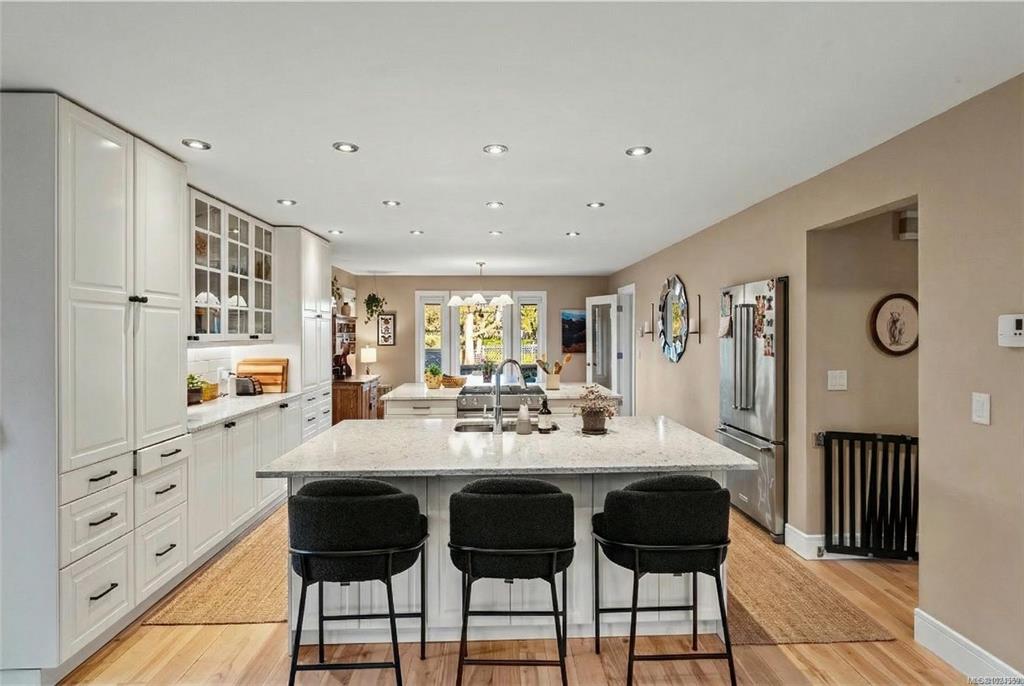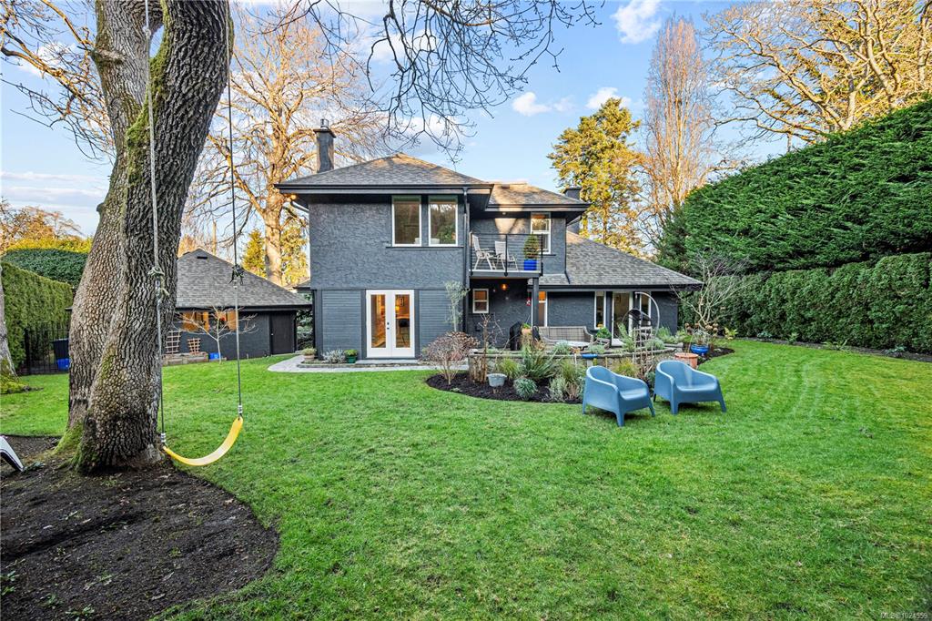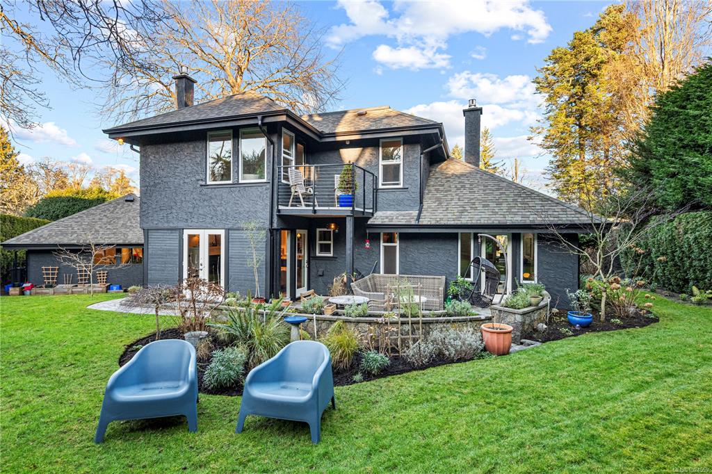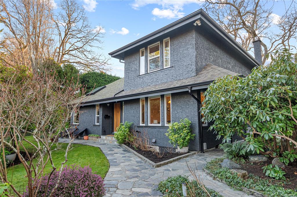 *Open House Sat 1–3/Sun 11–1* A heritage stone wall and iron gate frame the entry to this modernized family estate in the heart of Oak Bay. Follow the stone pathway to a thoughtfully designed home offering ideal separation of spaces for everyday living and hosting. The main level has a living room with vaulted wood ceilings and gas fireplace, a separate sitting room with garden doors to the backyard, and an exceptional kitchen with coffee bar, and seamless flow to the dining area and second family room—also...