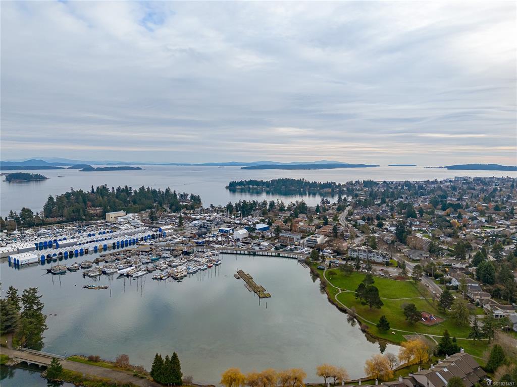 You will be impressed w this top-floor, east-facing condo in the heart of Sidney. Tucked within “Marina Park,” you’re just steps from a stunning waterfront park & surrounded by lush, mature gardens filled w vibrant rhododendrons. This peaceful setting feels serene & picturesque in every season. Thoughtful updates throughout, including a refreshed kitchen, modern bathroom, cork flooring & fresh paint. Large windows fill the space w natural light, creating a warm & inviting atmosphere. Expansive, private balc...