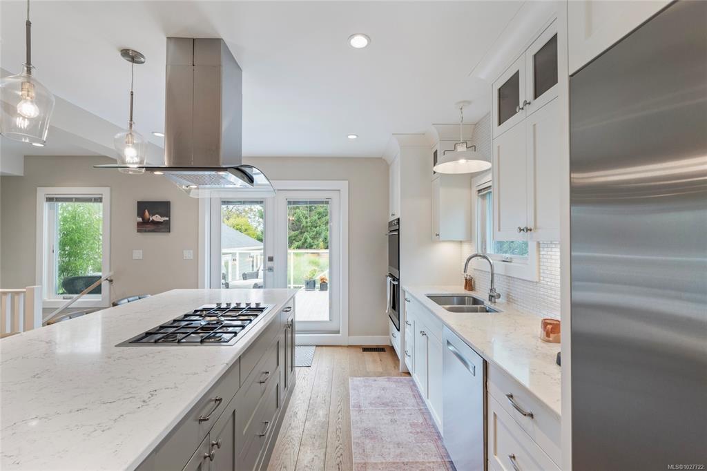 Rare opportunity in Oak Bay! This transformed character home sits on a 9060 ft² lot with a new, legal detached studio. Reno'd down to the studs with design by Jenny Martin, the main home offers 4 beds + den, 3 baths, and an open-concept layout ideal for entertaining. The chef's kitchen, European Oak floors and gas fireplace offer elevated living on the main, with flexibility from a bedroom, 4P bath, and office/den. Upstairs, a primary retreat boasts 2 walk-in closets, and lavish ensuite w/soaker tub & heate...