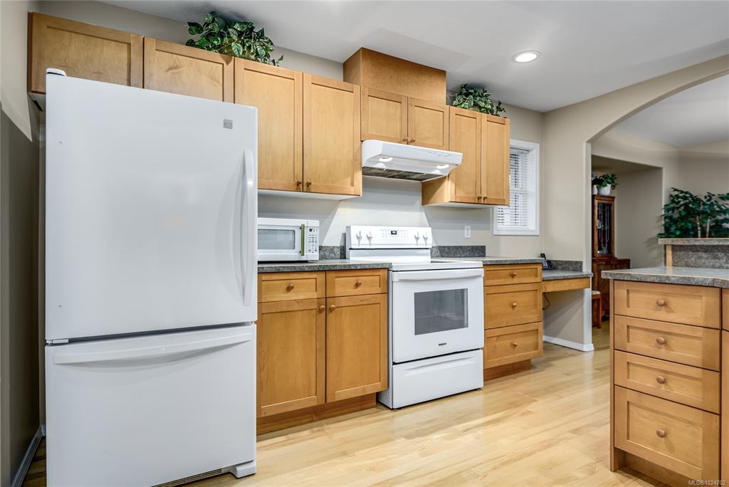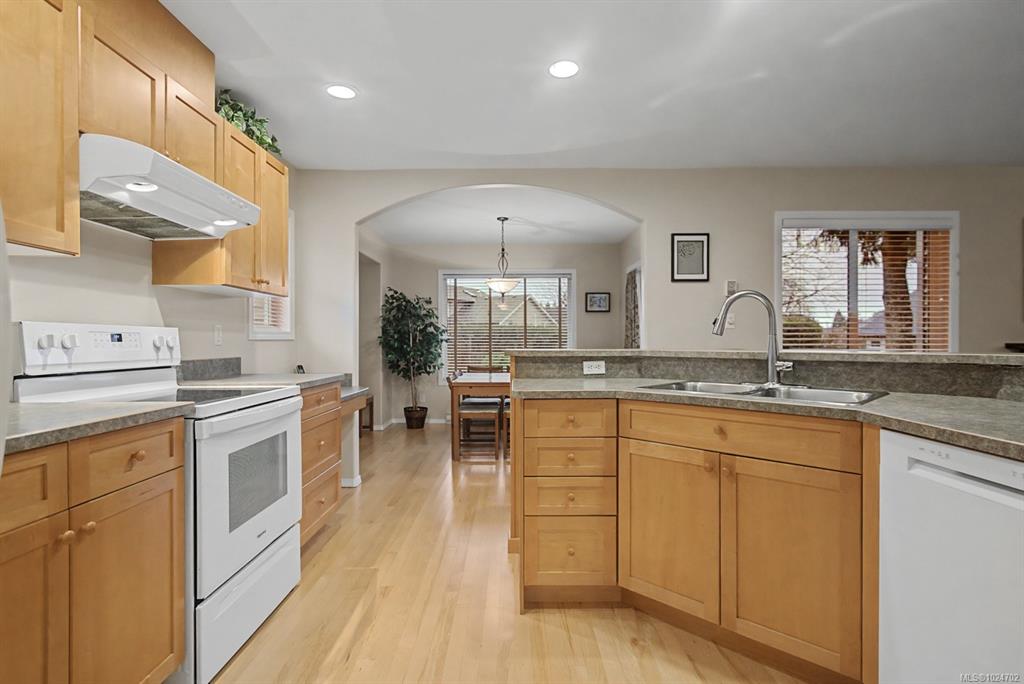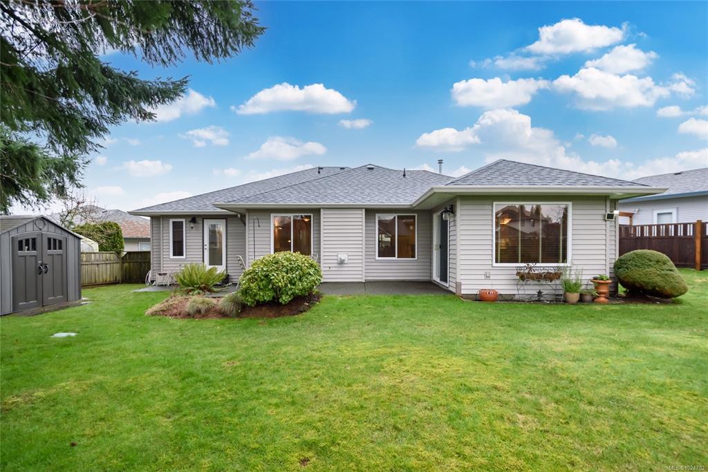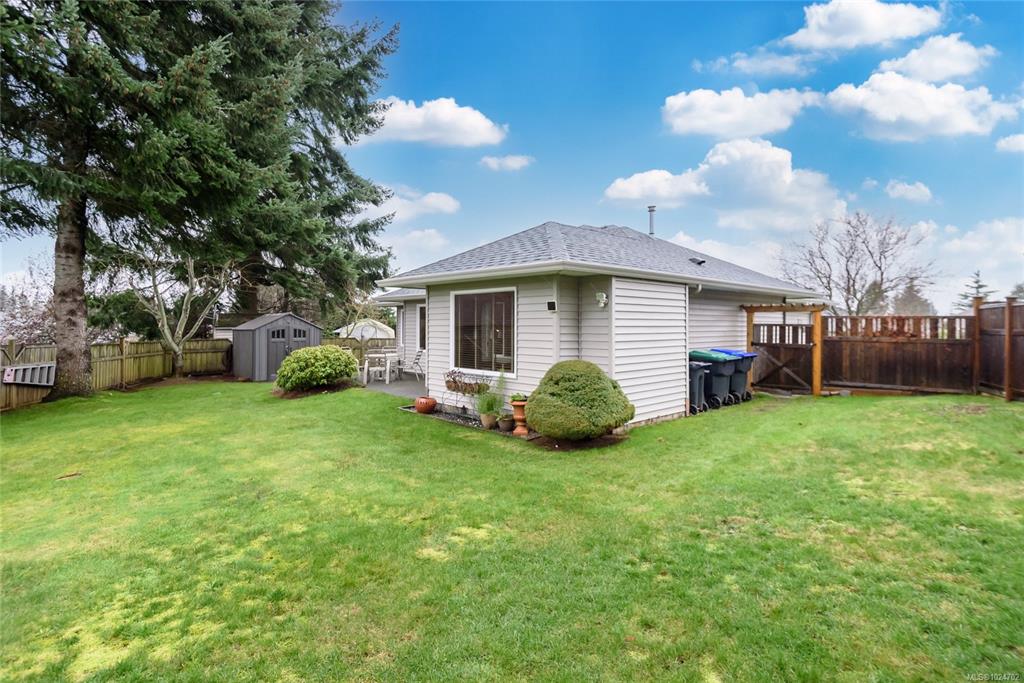 Wonderful 3 bdrm/2 bath rancher located on a quiet cul-de-sac in Courtenay East, this is a home you will love! Excellent layout with open plan offering 1411 sf of living space. Well-designed kitchen with wood cabinets, centre island (eat-up bar) & large walk-in pantry. The adjoining living room offers a gas fireplace & spacious dining room with convenient patio/backyard access. This home is extra bright with lots of windows, what a treat! Spacious primary bdrm with double closets, full 3-pce ensuite & door...