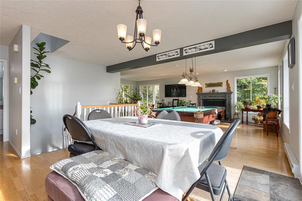 Executive-style home in sunny Saseenos, on the Victoria side of Sooke. Set on a private 1-acre lot with southern exposure, this 2,200 sq ft home features a full-length deck with peekaboo harbor views. The open-concept main level impresses with a grand kitchen and oversized eat-up island, plus a spacious living area with a custom wood-burning fireplace. The elegant primary suite includes a 5-piece ensuite with a jacuzzi tub, with potential for a second bedroom or office upstairs. Downstairs offers 2 bedrooms...