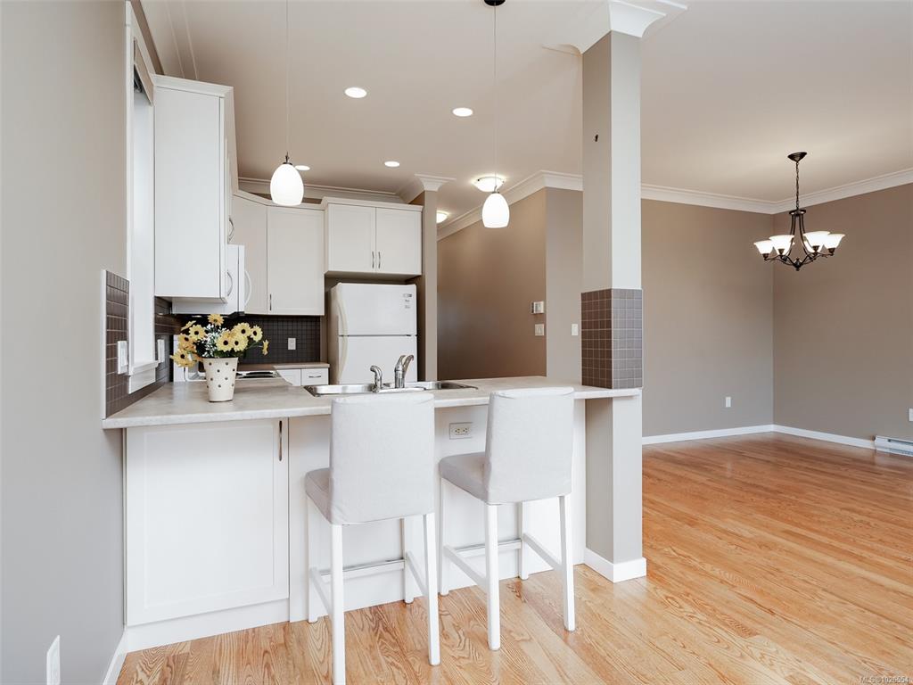 Gorgeous, impeccably maintained two-level home offering 3 bedrooms & 3 bathrooms in a central, walkable location. Built in 2009, this picture-perfect residence features nearly 1,700 sq.ft. of quality finishing, including beautiful hardwood floors, fresh carpet, & designer paint throughout. The welcoming entryway provides convenient access to the single garage & 2 piece powder. The open-concept living room showcases an over-height ceiling & a cozy gas fireplace. A bright white shaker-style kitchen w/an eatin...