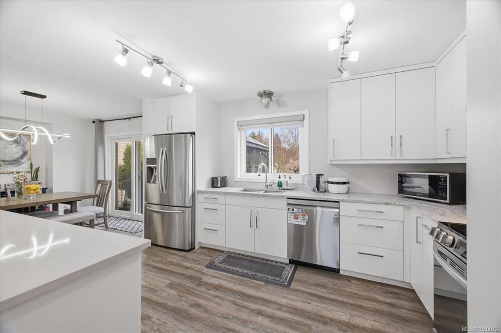 Bright, updated, and well-located in Departure Bay. This 4 bed, 3 bath home was fully renovated in 2018, offering a clean, modern interior with an open concept kitchen, dining, and living area that feels both spacious and functional. The kitchen features updated cabinetry, stone countertops, stainless steel appliances, and modern lighting throughout. Downstairs includes a large family room, fourth bedroom, laundry, and ample storage space—ideal for growing families or added flexibility. The windows, some fl...