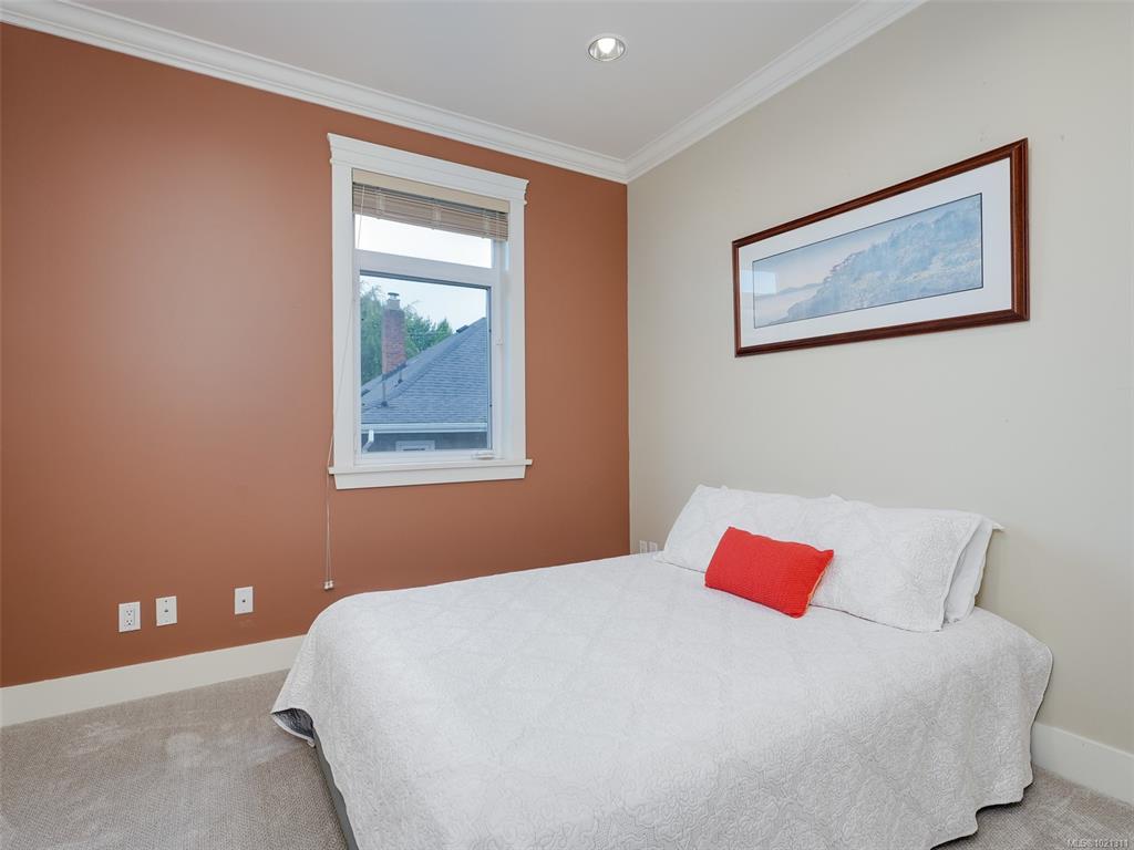 On a lovely tree lined street in a prime James Bay location, you’ll love this stunning 2 bedroom/3 bathroom south facing corner unit townhome. The main level has impressive 10 foot ceilings and a well designed open layout with maple floors. elegant chef's kitchen with stone counters, s/s appliances and island with a prep sink. Lovely feature gas fireplace in the living room, a dining area, powder room and laundry. Sunny front porch. Upstairs, the elegant primary bedroom offers luxury with a walk-in closet a...