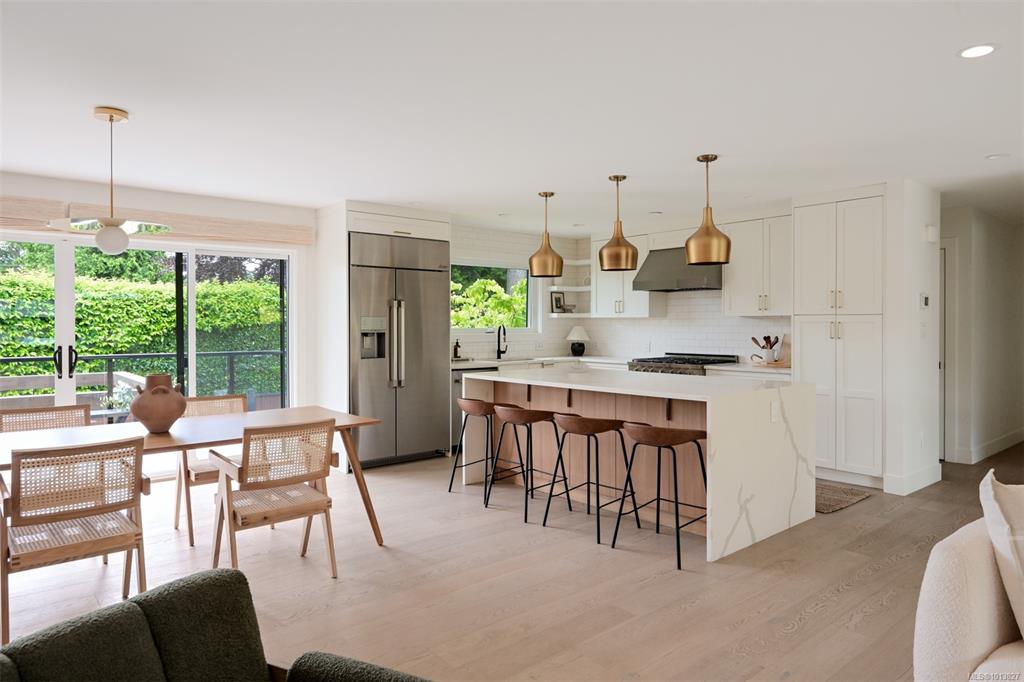 Located on a quiet cul-de-sac in the heart of Oak Bay, this 5 bed, 3 bath home offers an expansive floorplan and an oversized double garage. Enjoy walkability to top-rated schools, beaches, and the shops and cafés of Oak Bay Village. The home features a massive south-facing backyard perfect for entertaining, new designer lighting, and a stunning gas fireplace with custom white oak cabinetry. Designed by award-winning Raubyn Rothschild of Rothschild West and featured in Spruce Magazine, the interiors are tho...