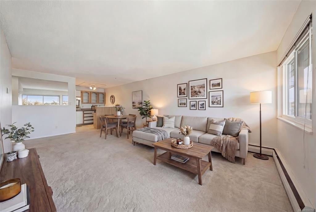 This bright and spacious top-floor 1 bed, 1 bath condo, offers 799 sq ft of comfortable living in the heart of South Oak Bay. Perfect for first-time buyers looking for an affordable entry into the market or retirees seeking a quiet place to downsize. This well-kept home features a generous living/dining area that opens to a north-facing deck with mountain views, a roomy kitchen with excellent storage and a flexible workstation, plus a separate storage locker, bike storage, common laundry, and one parking st...