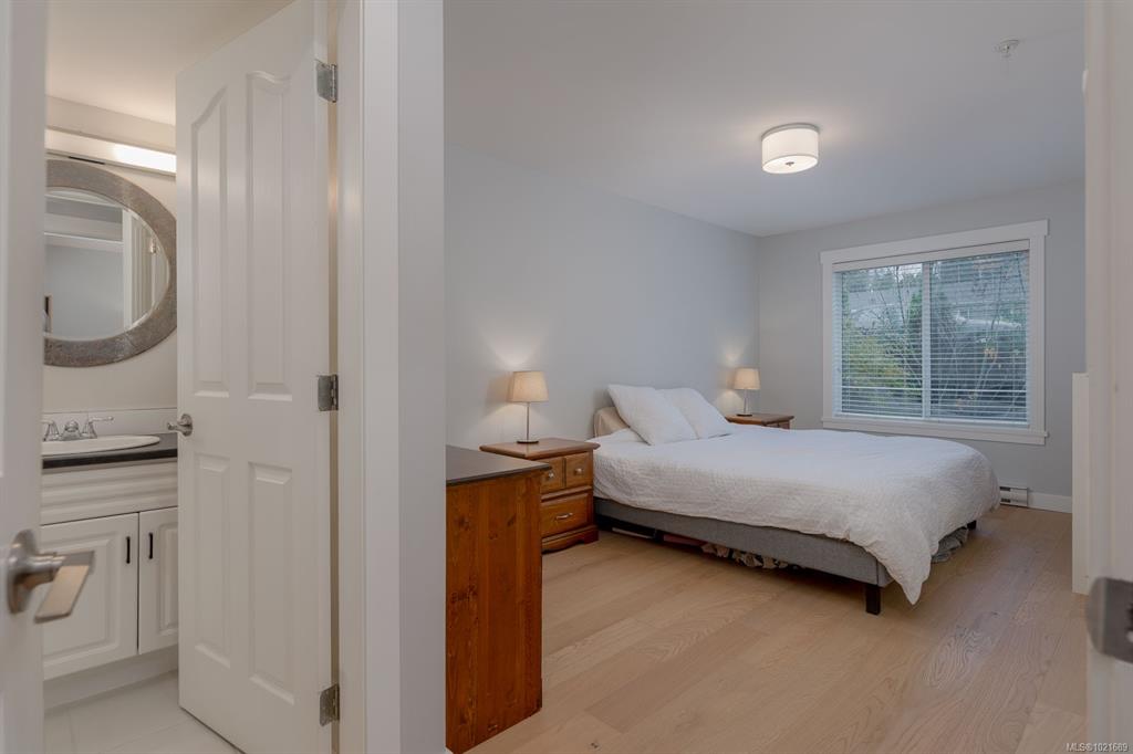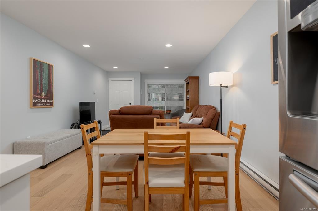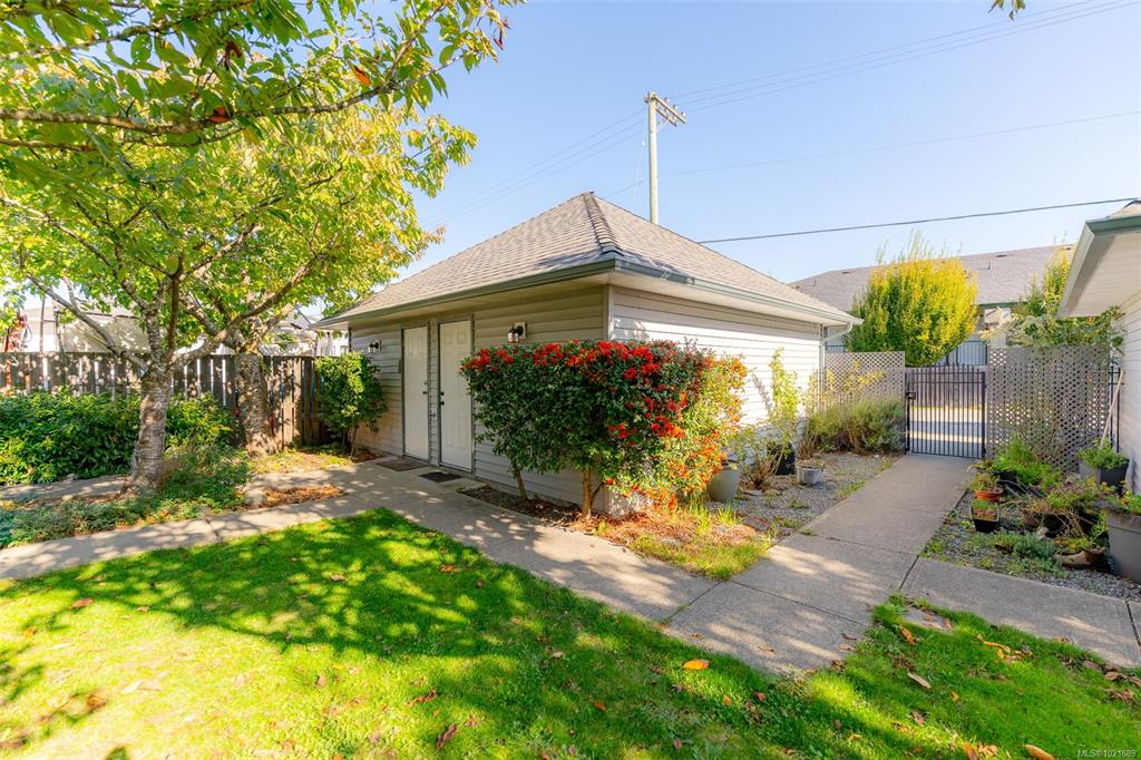Fully renovated 2007 built 3 bedroom 2 full bath townhome with detached garage. Well run 4 unit strata has friendly neighbours, allows 1 pet any size & fresh exterior fascia, repair & full paint. Intimate atmosphere set down from street level with easy level rear access (garage encloses the rear off a quiet alley). High quality hardwood floor & new trim span the rancher style home. The kitchen gleams with new quartz island eating bar, tile backsplash, stainless appliances, black fixtures & timeless white ca...