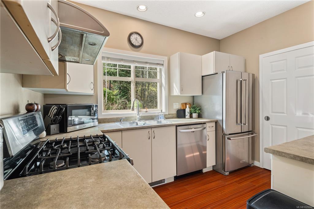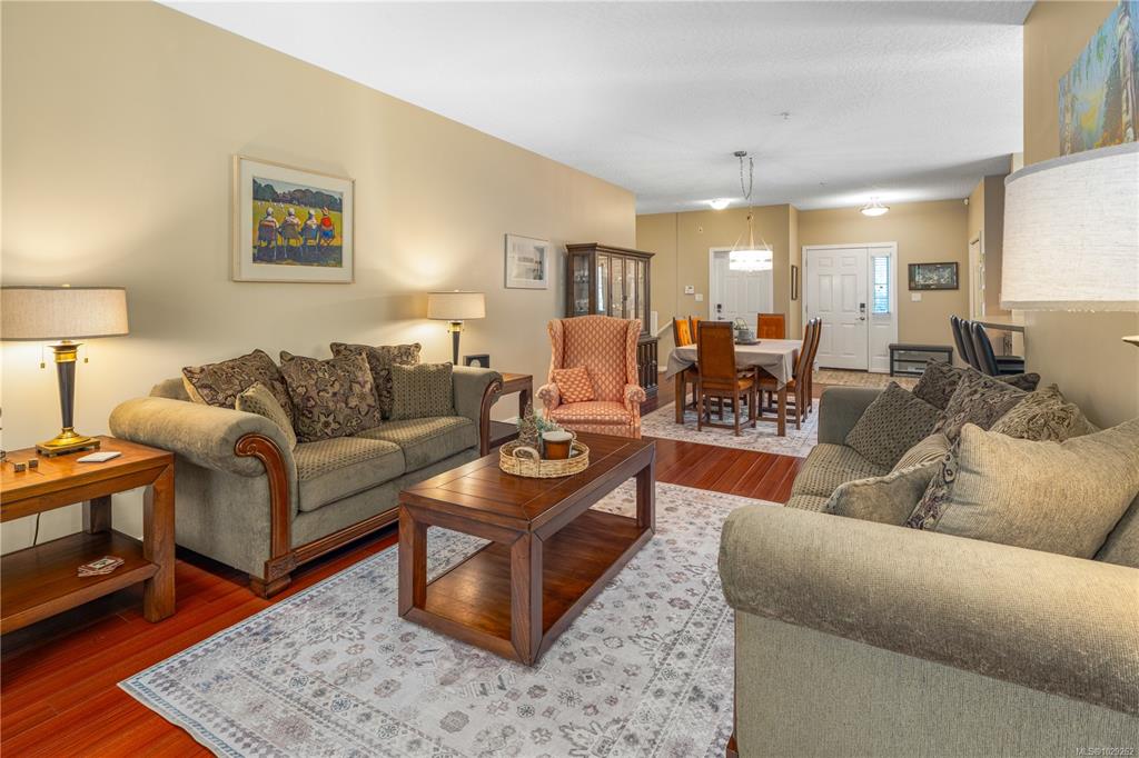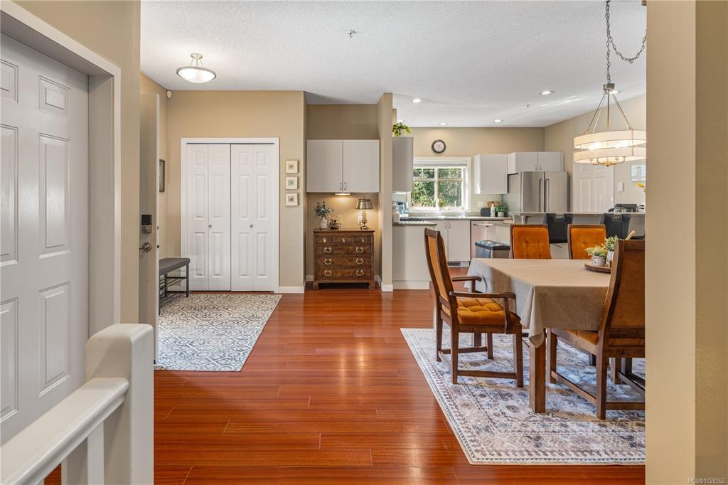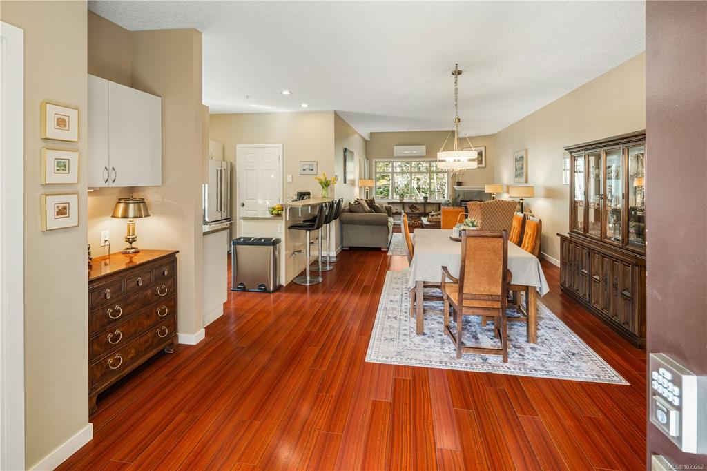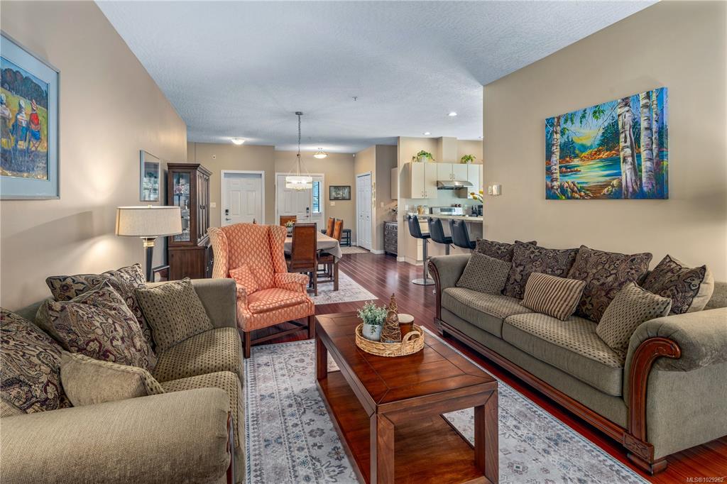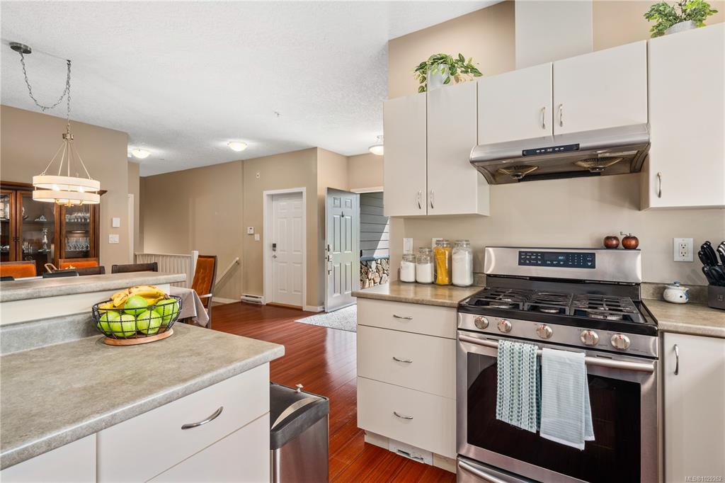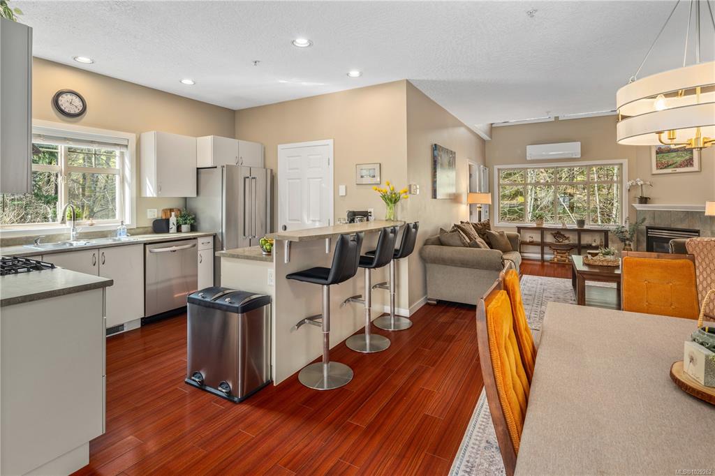Bright, spacious and open, this fantastic end-unit townhouse, in one of Bear Mountain’s most desirable neighbourhoods, is just moments from the golf course and resort. Just under 2,500 sq ft, this open concept plan features living room with vaulted ceilings, gas fireplace and deck that overlooks the private backyard. Kitchen with newer stainless appliances, gas range, peninsula/breakfast bar, walk in pantry plus formal dining area. Large main floor primary suite with 4 pc bath and walk-in closet plus 2nd bd...