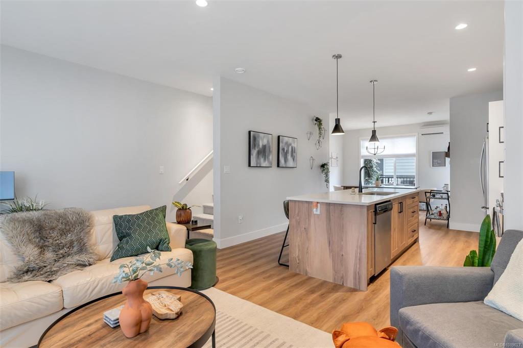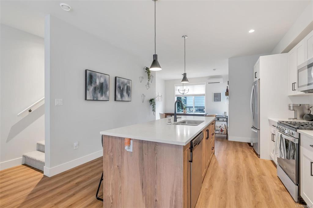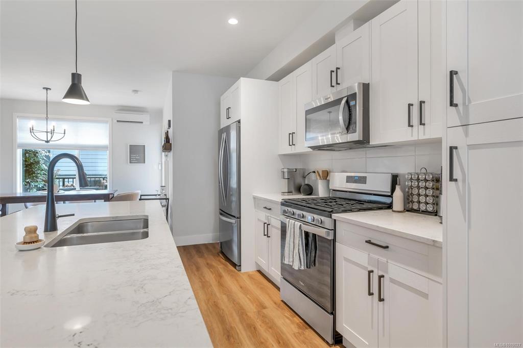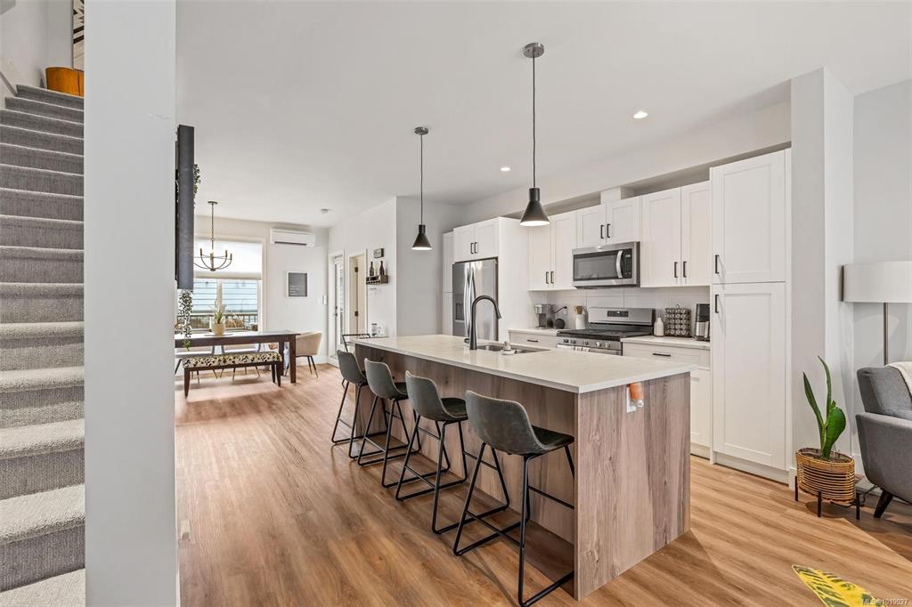 This well designed 1450 sqft home offers 3 bedrooms on the upper level, 3 bathrooms in total, & an oversized 532 sqft garage. The main floor has a bright, open concept layout with a chef inspired kitchen at the centre of the space. It features stainless appliances with a gas range, soft close drawers, a floor to ceiling pantry, tile backsplash & a massive island that connects the dining & living rooms. Enjoy 9ft ceilings, an electric fireplace, cordless blinds, AC, on demand hot water, & quartz countertops ...