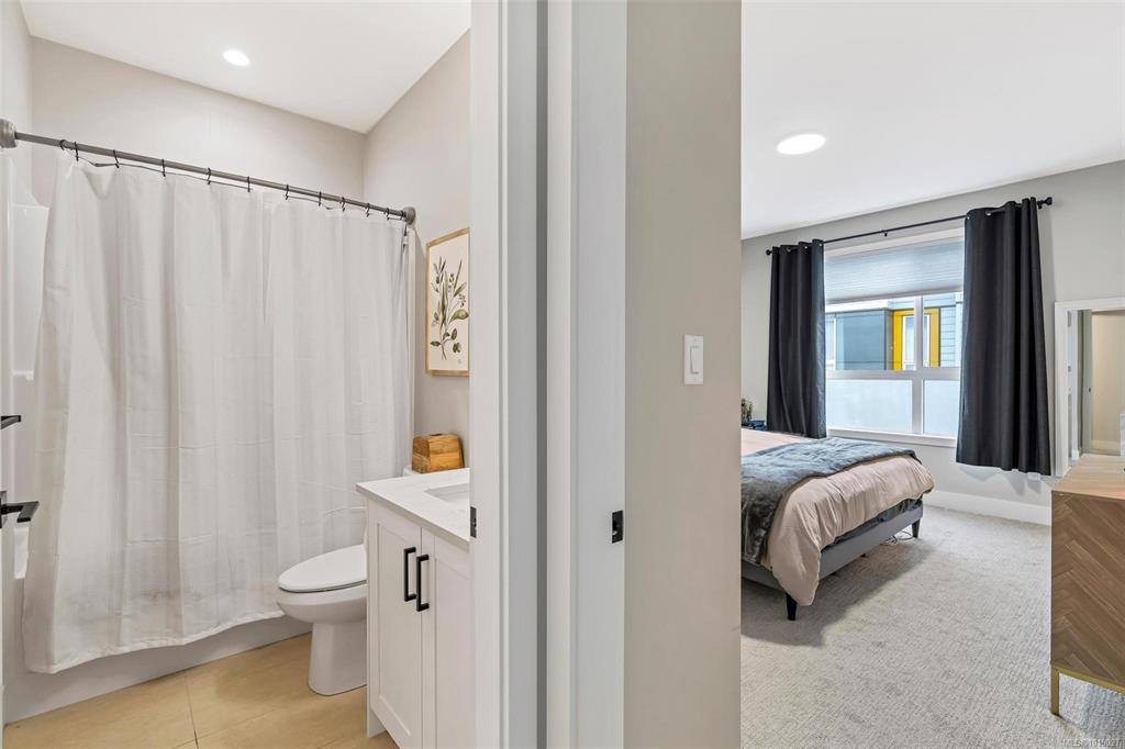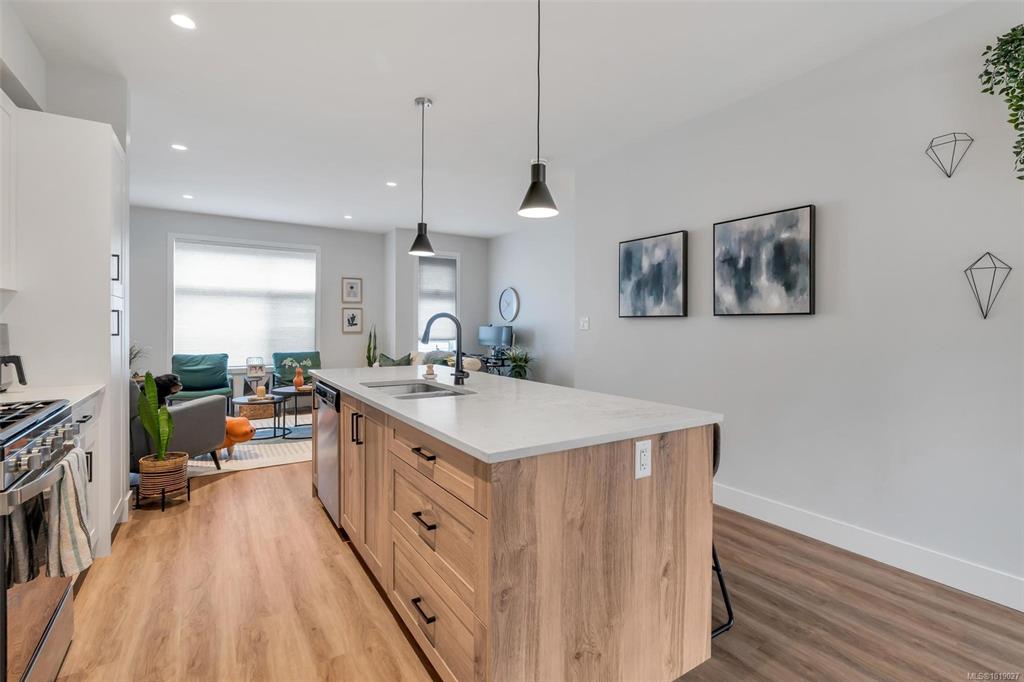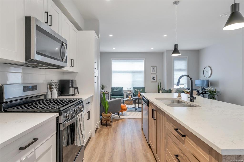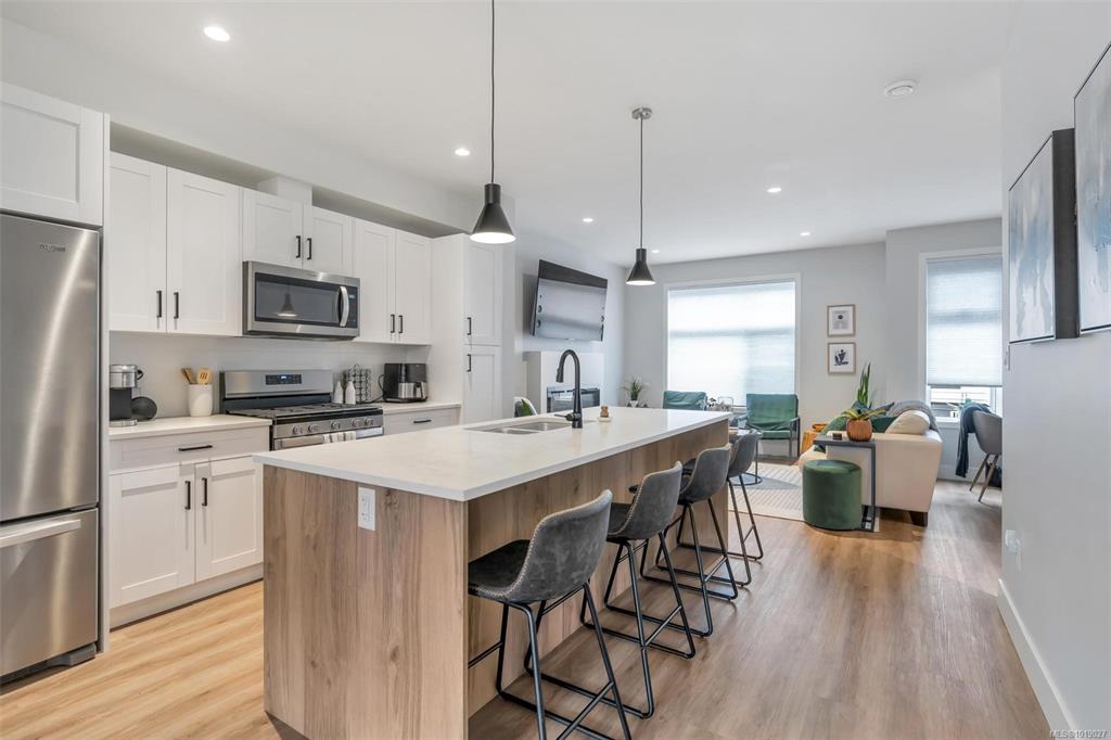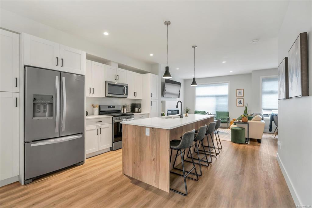 This well designed 1450 sqft home offers 3 bedrooms on the upper level, 3 bathrooms in total, & an oversized 532 sqft garage. The main floor has a bright, open concept layout with a chef inspired kitchen at the centre of the space. It features stainless appliances with a gas range, soft close drawers, a floor to ceiling pantry, tile backsplash & a massive island that connects the dining & living rooms. Enjoy 9ft ceilings, an electric fireplace, cordless blinds, AC, on demand hot water, & quartz countertops ...