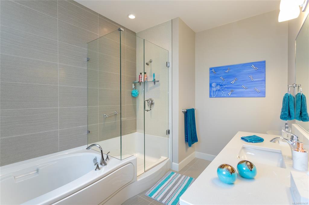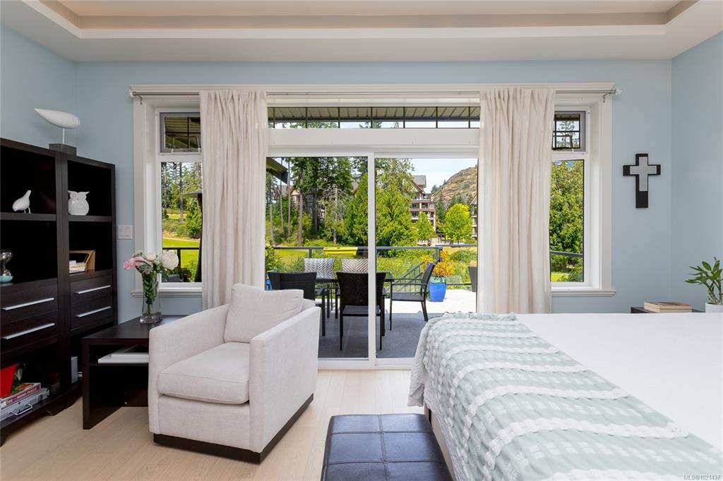 Rare Find! Overlooking the 9th hole of the Nicklaus designed golf course on Bear Mountain sits this contemporary masterpiece which includes 4 BR's and 4 baths. Over 2900 sq ft on two levels this home boasts a large Office/Den with PRIMARY BEDROOM ON THE MAIN FLOOR with spa like ensuite & walk-in closet. The gourmet kitchen features a large island, quartz throughout and SS appliances. Bright open layout, spacious living room with Gas fireplace and a walkout to the large covered deck. The dining room is desig...