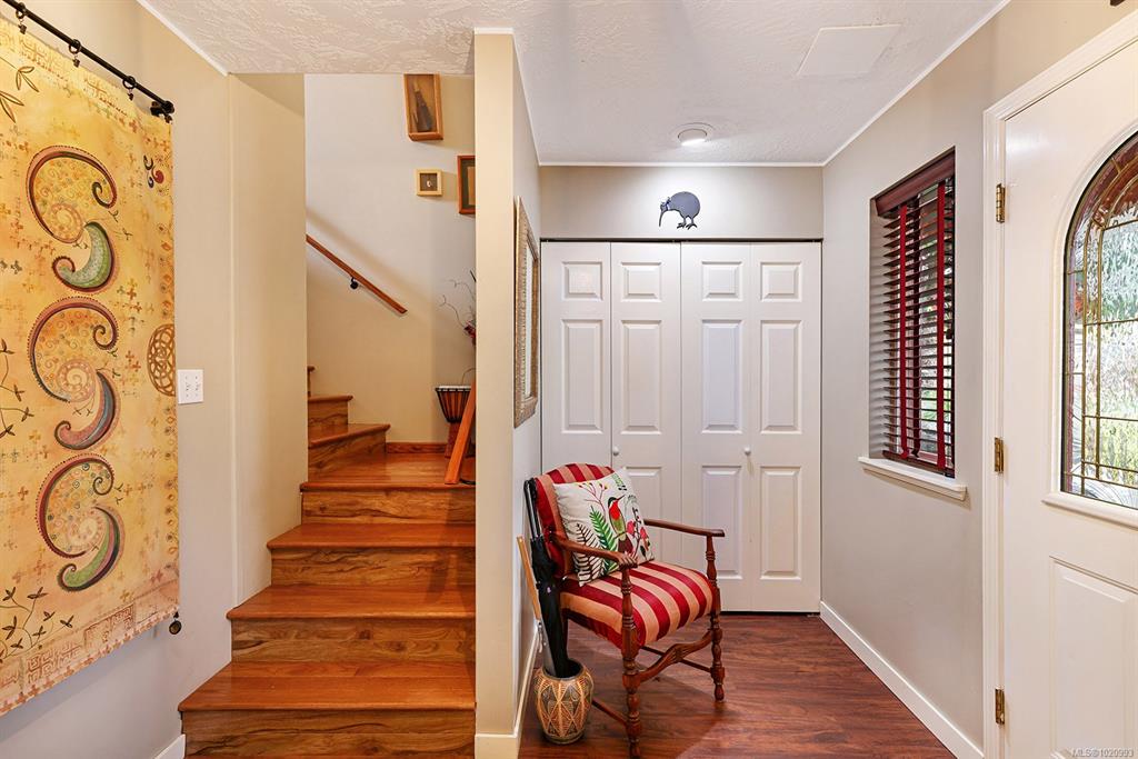 Expansive views of the Beaufort Mtn Range, and south to the Comox Harbour. A fantastic floor plan w/ main living on the upper level to capture the views, and a private in-law suite on the lower level. The Great room boasts a split heat pump for efficient heating & A/C, cozy gas fireplace, gleaming hardwood flooring, large picture windows, a slider w/ built-in blinds, a full width deck & 2 yr old electric awning. The kitchen renovation created a well-designed space w/ a full pantry, s/s appliances, gas range...