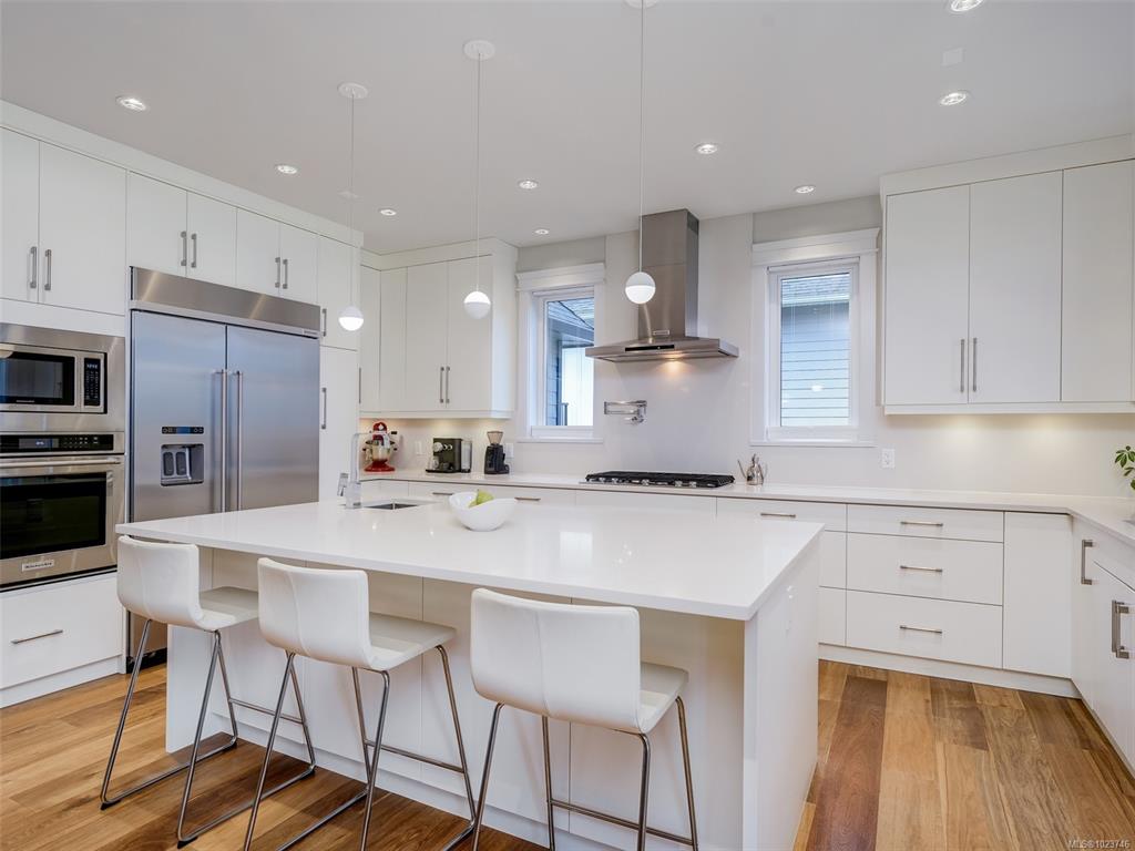 Welcome to the coveted Champions Way, where this 5 bed, 4 bath West Coast inspired executive home overlooks the 9th hole of the prestigious Jack Niklaus designed Bear Mountain G&CC. Thoughtful design and detail is evident with wide plank wood floors throughout the open plan main level and the stone fireplace in the living room incorporating the natural elements of the surrounding landscape. The chef’s kitchen takes center stage featuring a gas range, stainless steel appliances and entertainer’s island, whil...